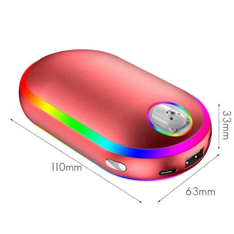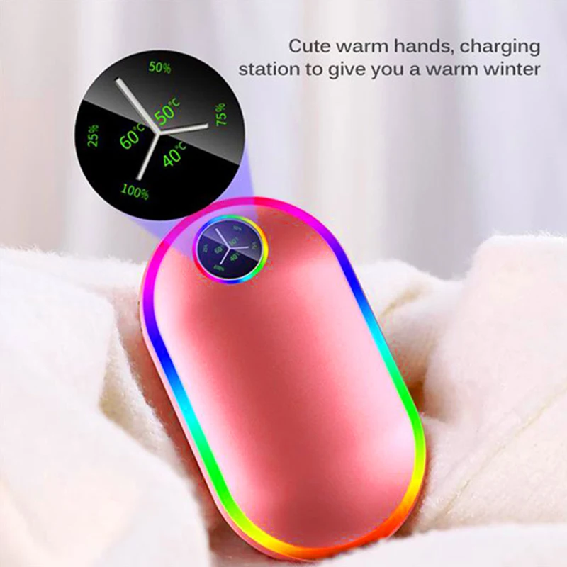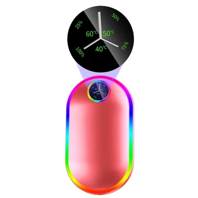 4-in-1 hand warmer: The compact hand warmer has four functions and has a wide range of applications. It can be a hand warmer; it can be a portable mobile power supply; it can be a colorful lamp used to create a party or holiday atmosphere, or it can be a massager.