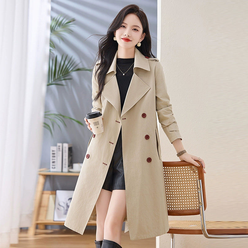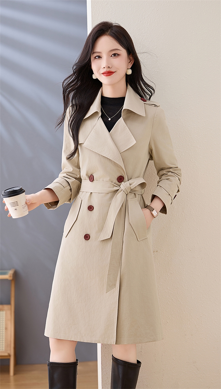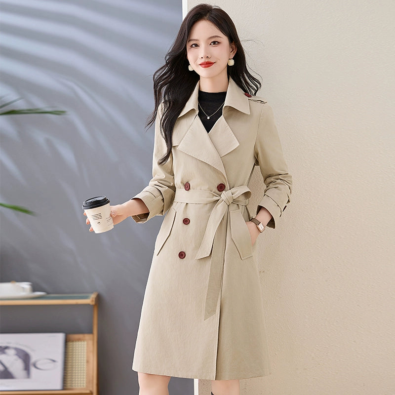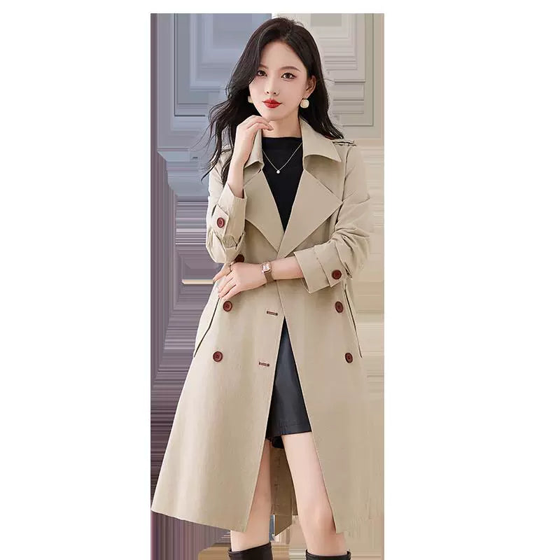 2024 Autumn Collection: Elegant and Stylish Mid-Length Cotton Trench Coat for Women – Casual Yet Fashionable Outerwear