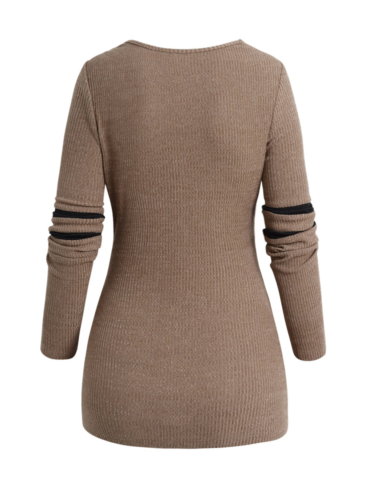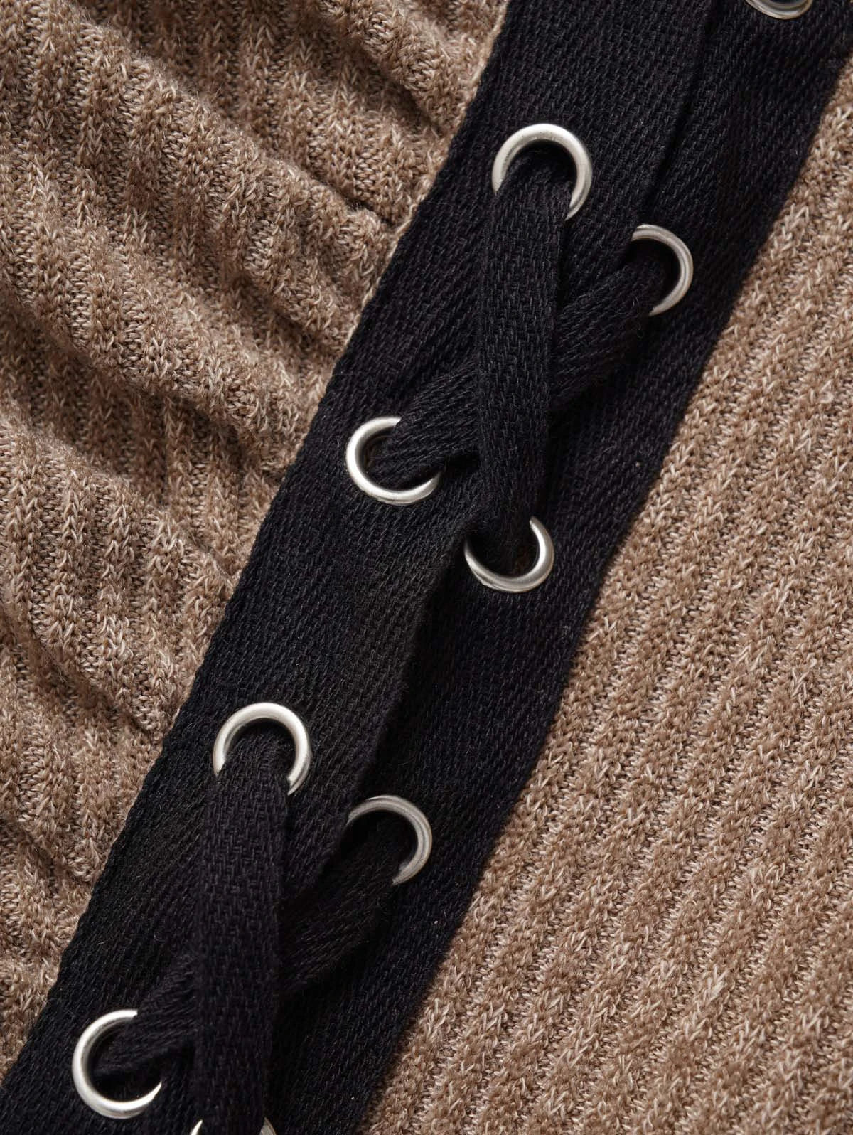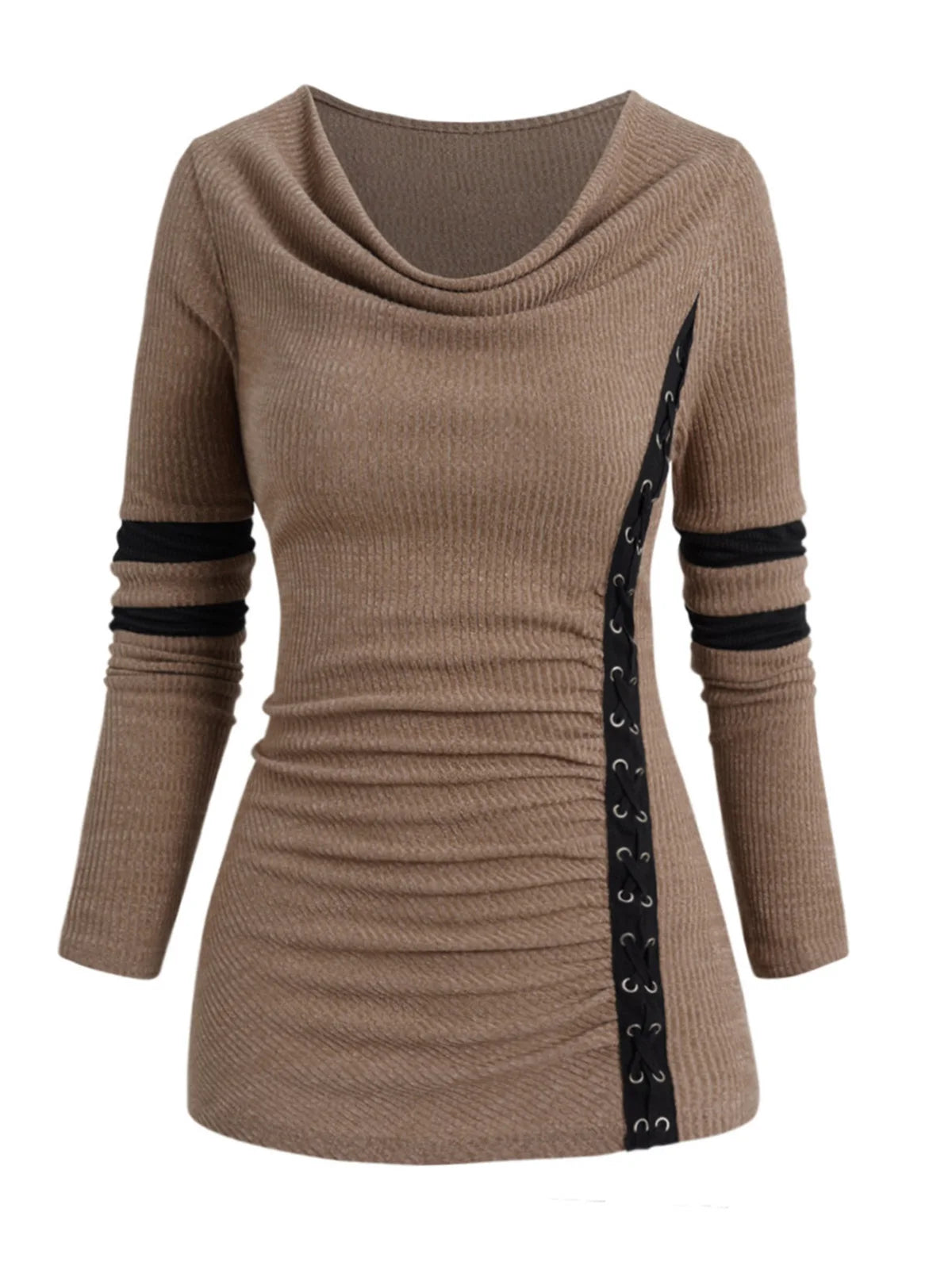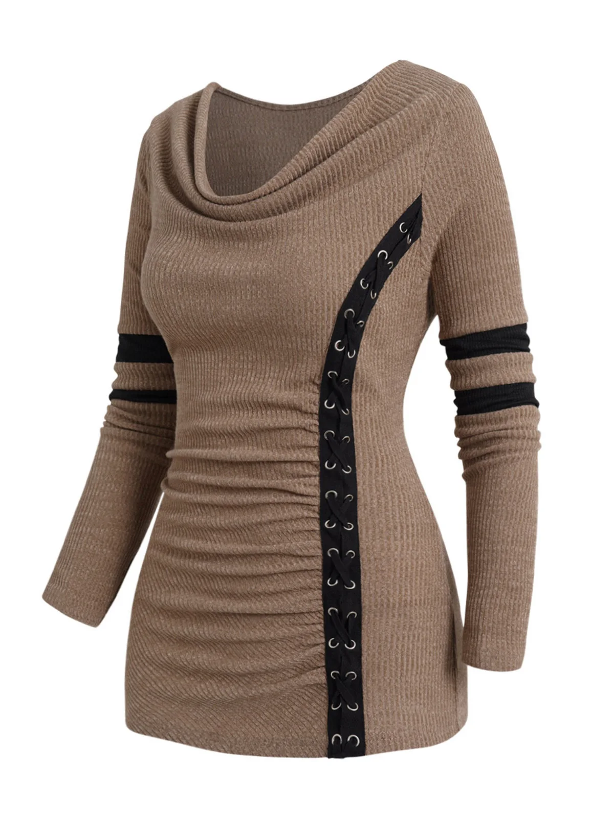2024 New Women's Christmas Sweater – Cowl Neck Colorblock Knit Top with Lace-Up Detail, Long Sleeve Casual Pullover
