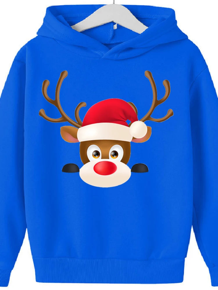 Christmas Deer Hoodie for Kids – Fleece Pullover Sweatshirt for Boys and Girls, Perfect for Autumn & Winter Outdoor Sports and Leisure