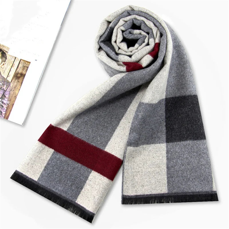 Fashion Men Scarves Luxury Plaid Autumn Winter Pashmina Neckerchief Thicken Warm Imitation Cashmere Men's Business Long Wraps