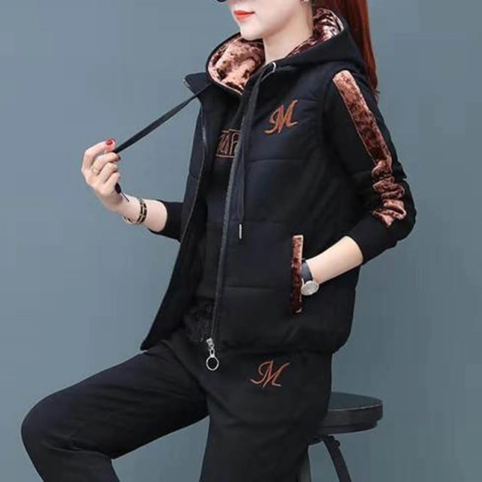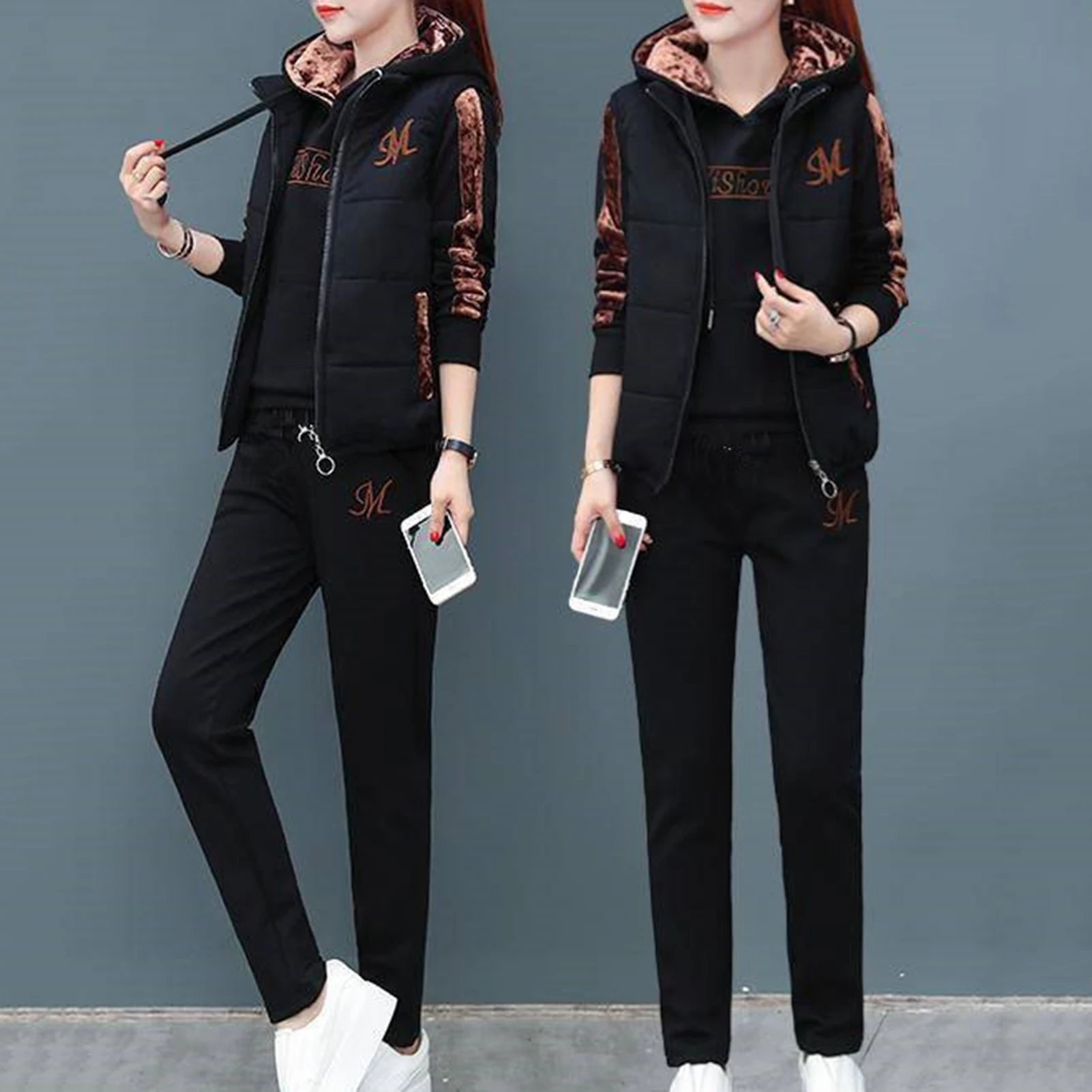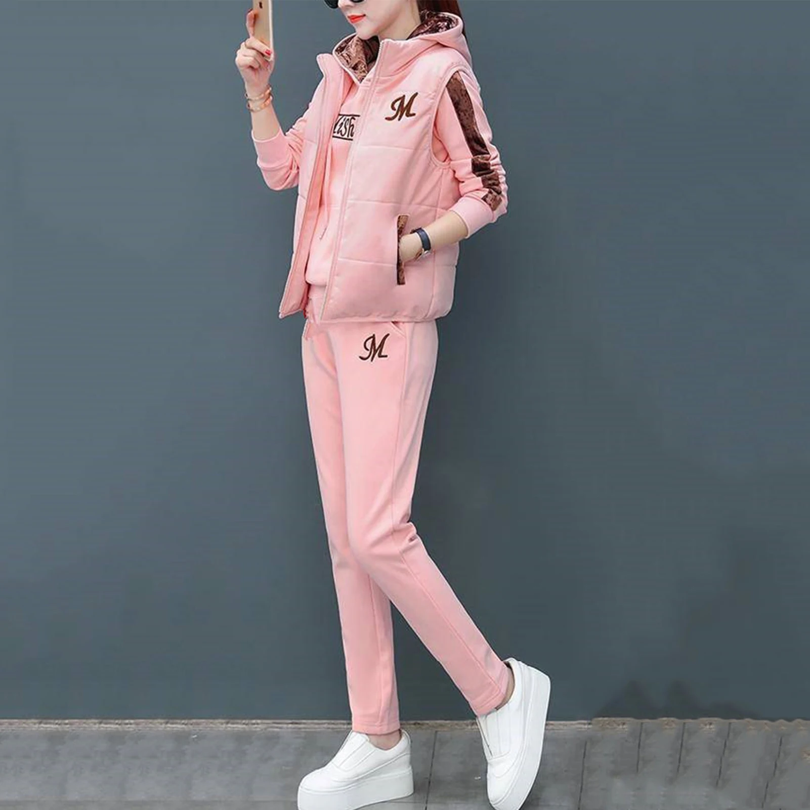 Fashionable 3-Piece Women's Outfit – 2025 Fall/Winter Thickened Tracksuit with Waistcoat, Hoodie, and Pants, Casual Sweat Suit for Women