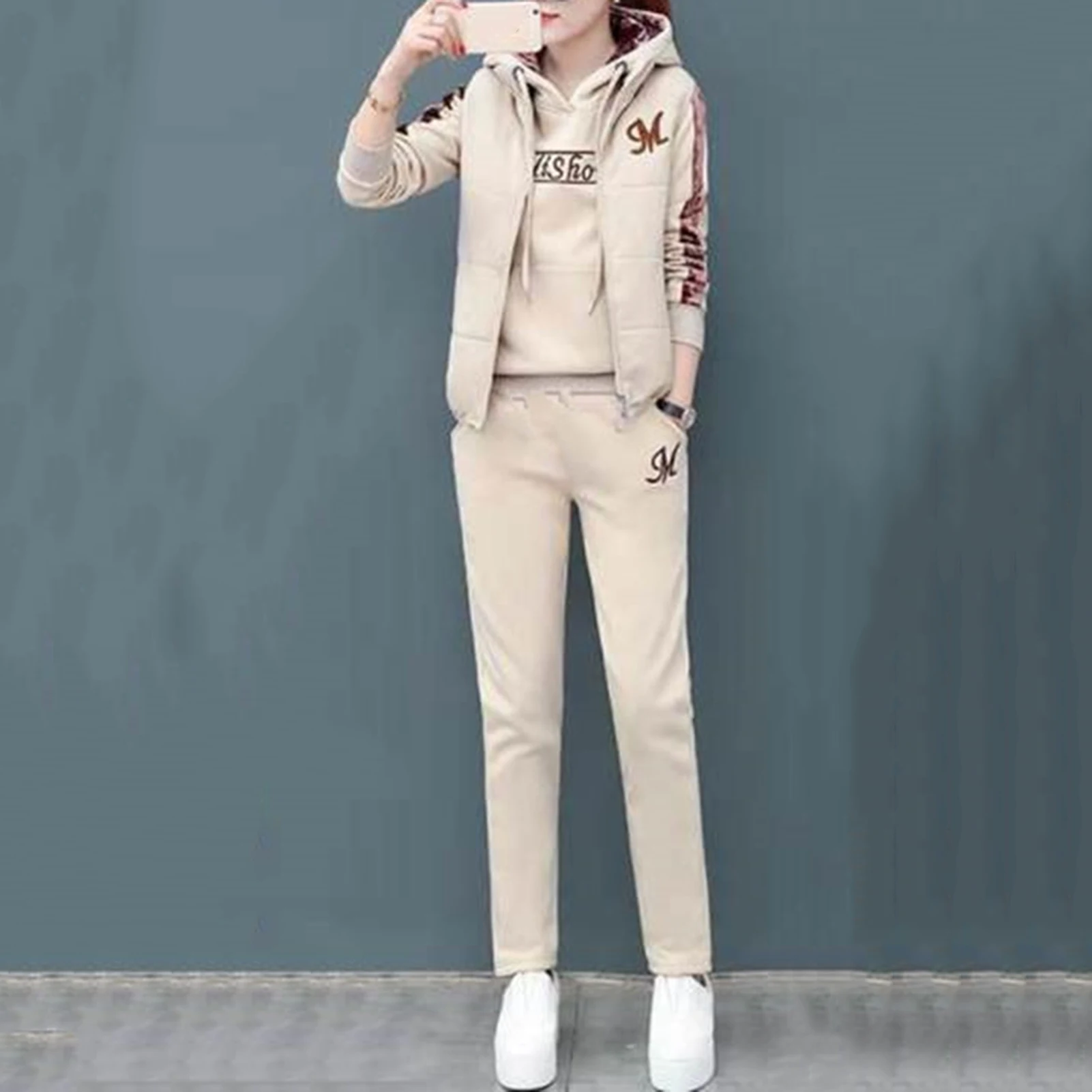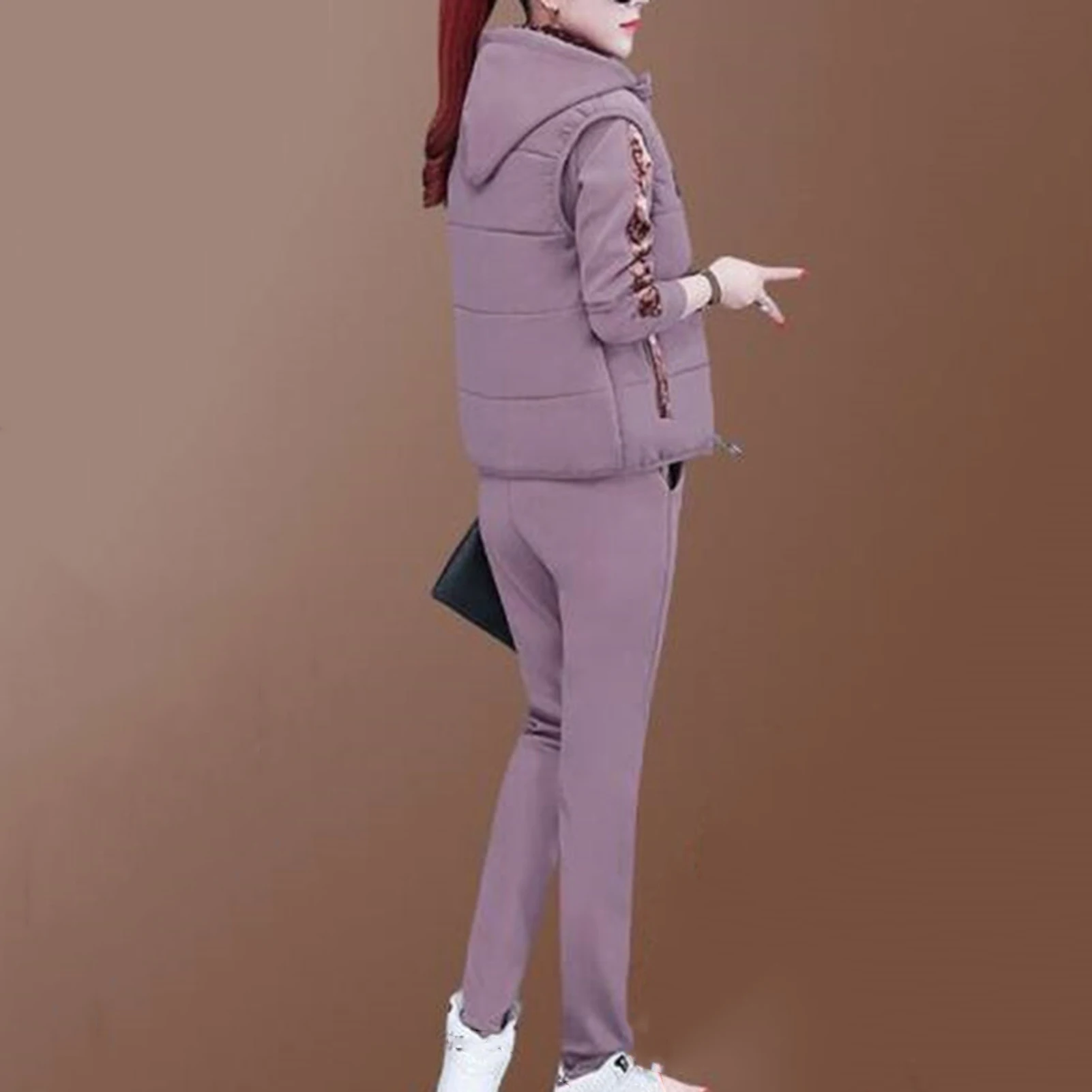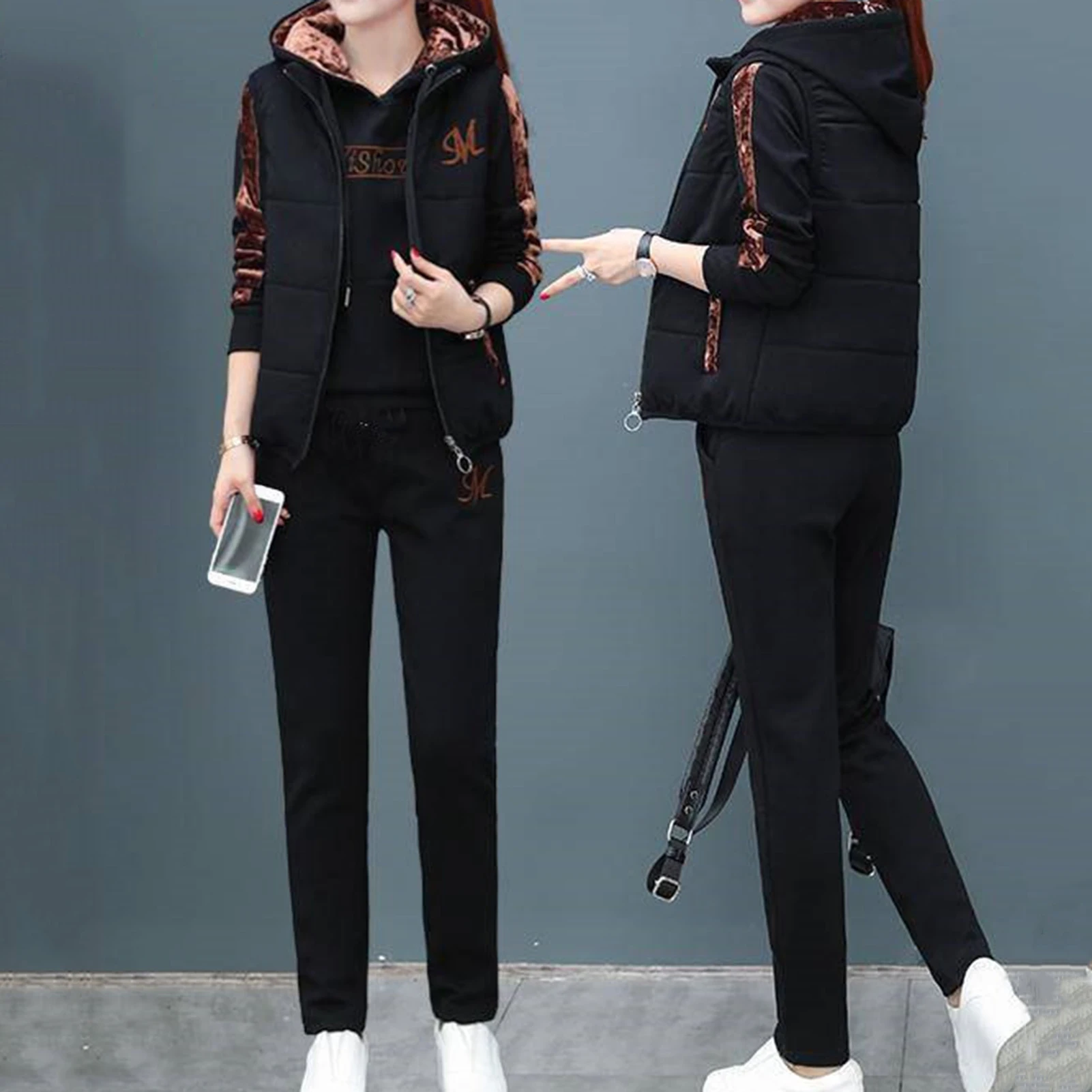 Fashionable 3-Piece Women's Outfit – 2025 Fall/Winter Thickened Tracksuit with Waistcoat, Hoodie, and Pants, Casual Sweat Suit for Women