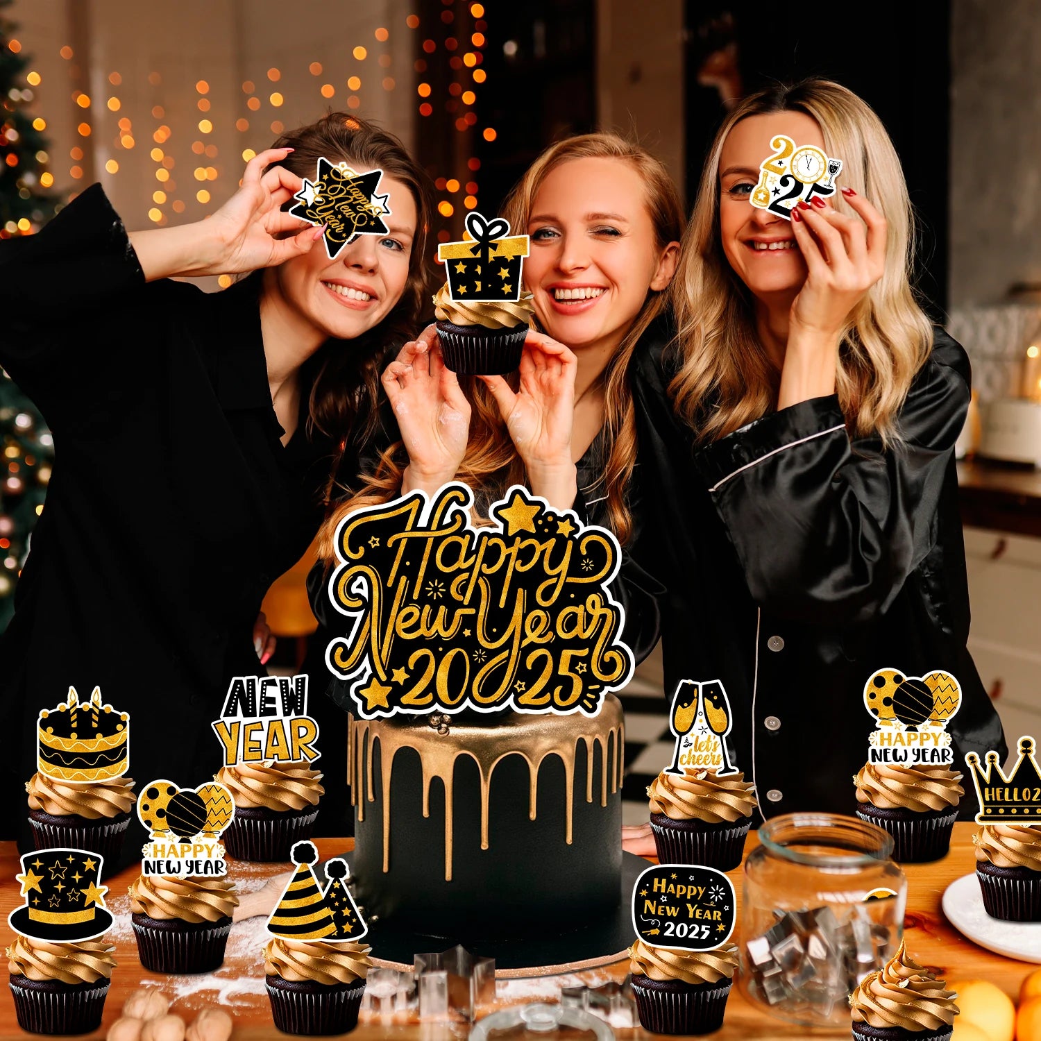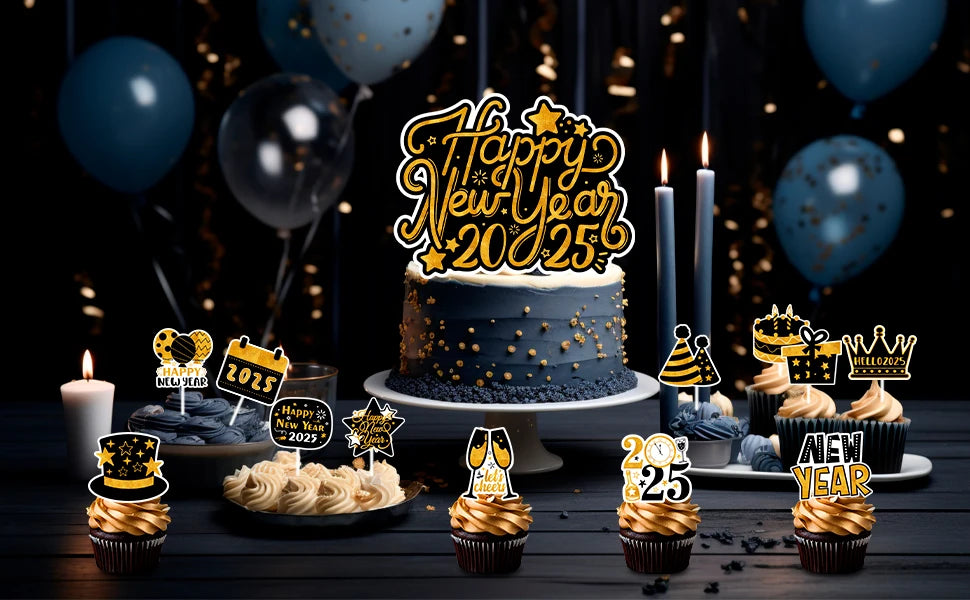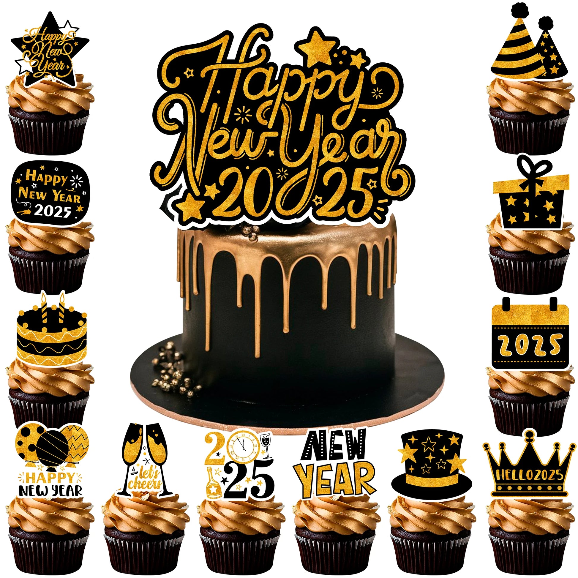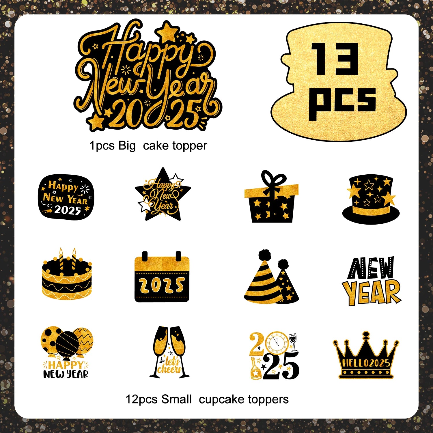 Happy New Year Cake Topper,13pcs Happy New Year 2025 Cupcake Toppers/2025 New Year's Cupcake Toppers&2025 Cake Topper