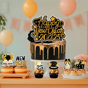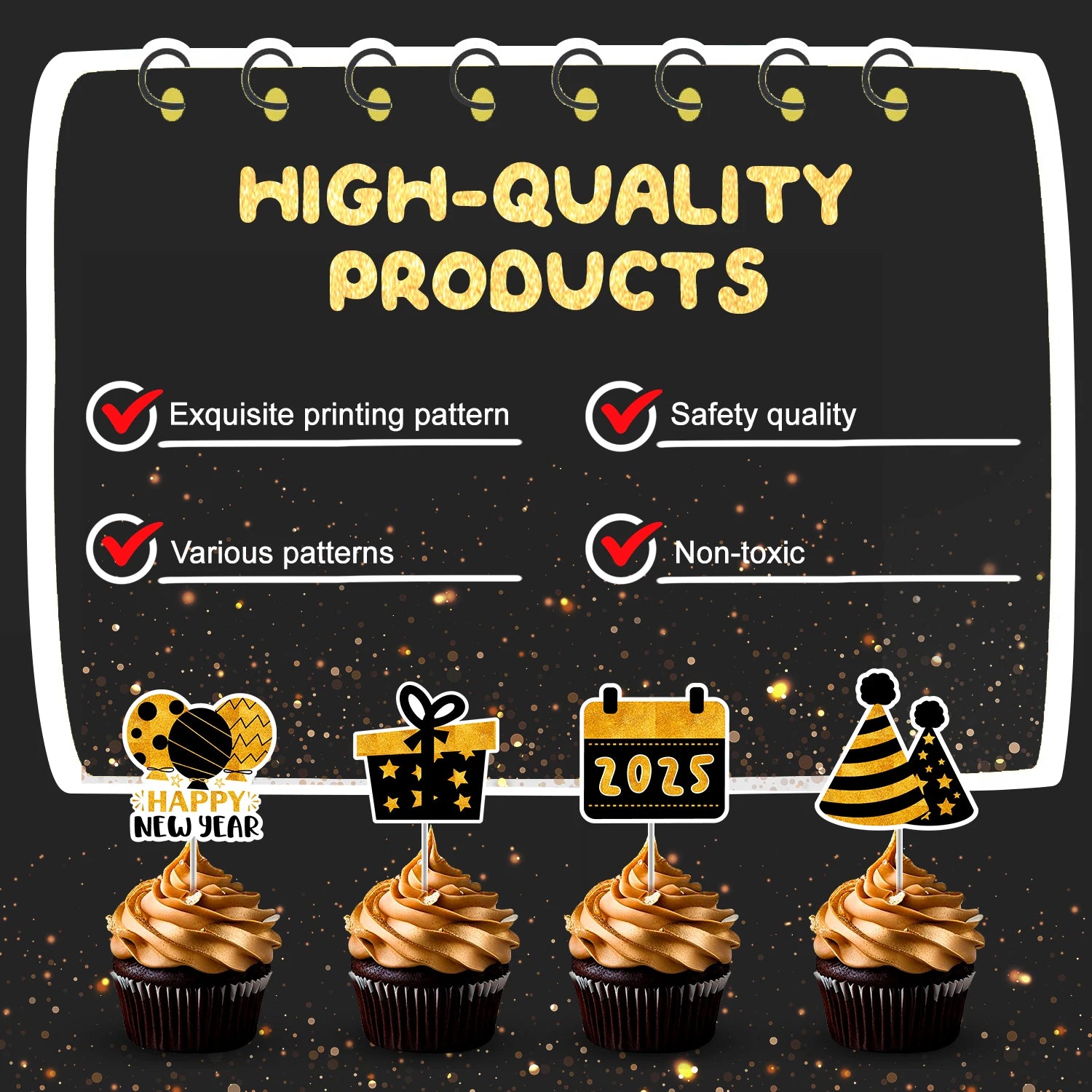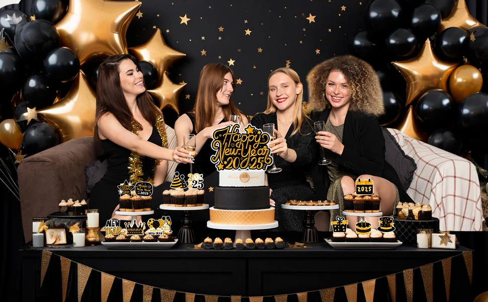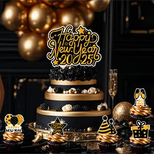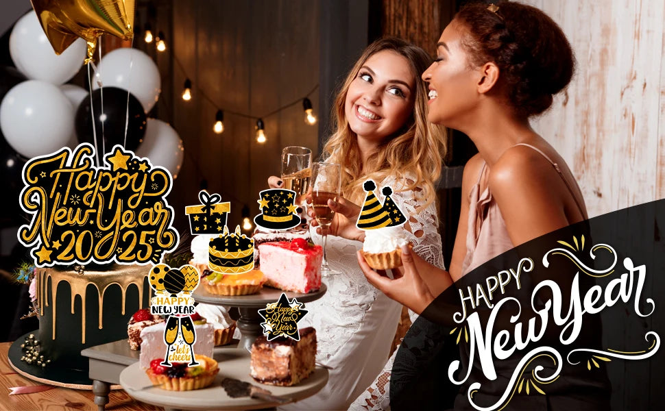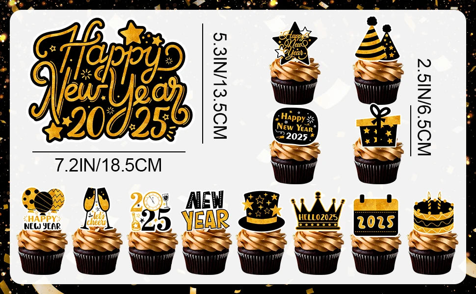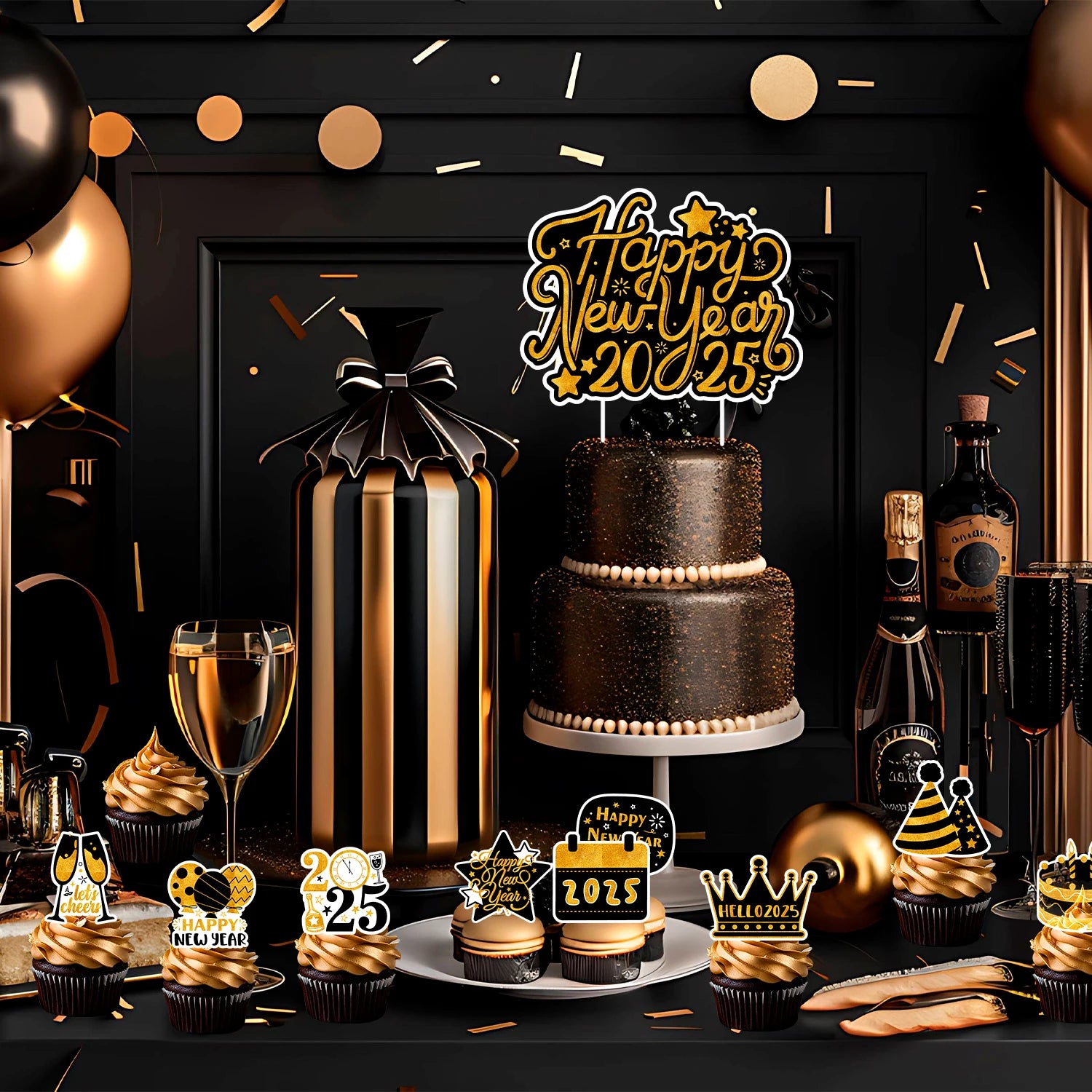 Happy New Year Cake Topper,13pcs Happy New Year 2025 Cupcake Toppers/2025 New Year's Cupcake Toppers&2025 Cake Topper