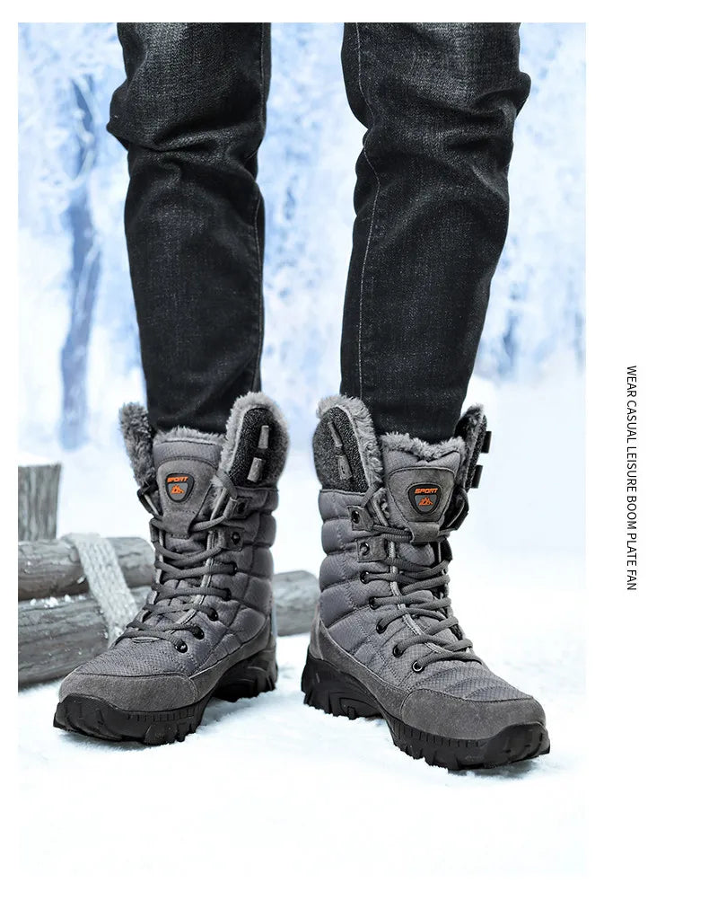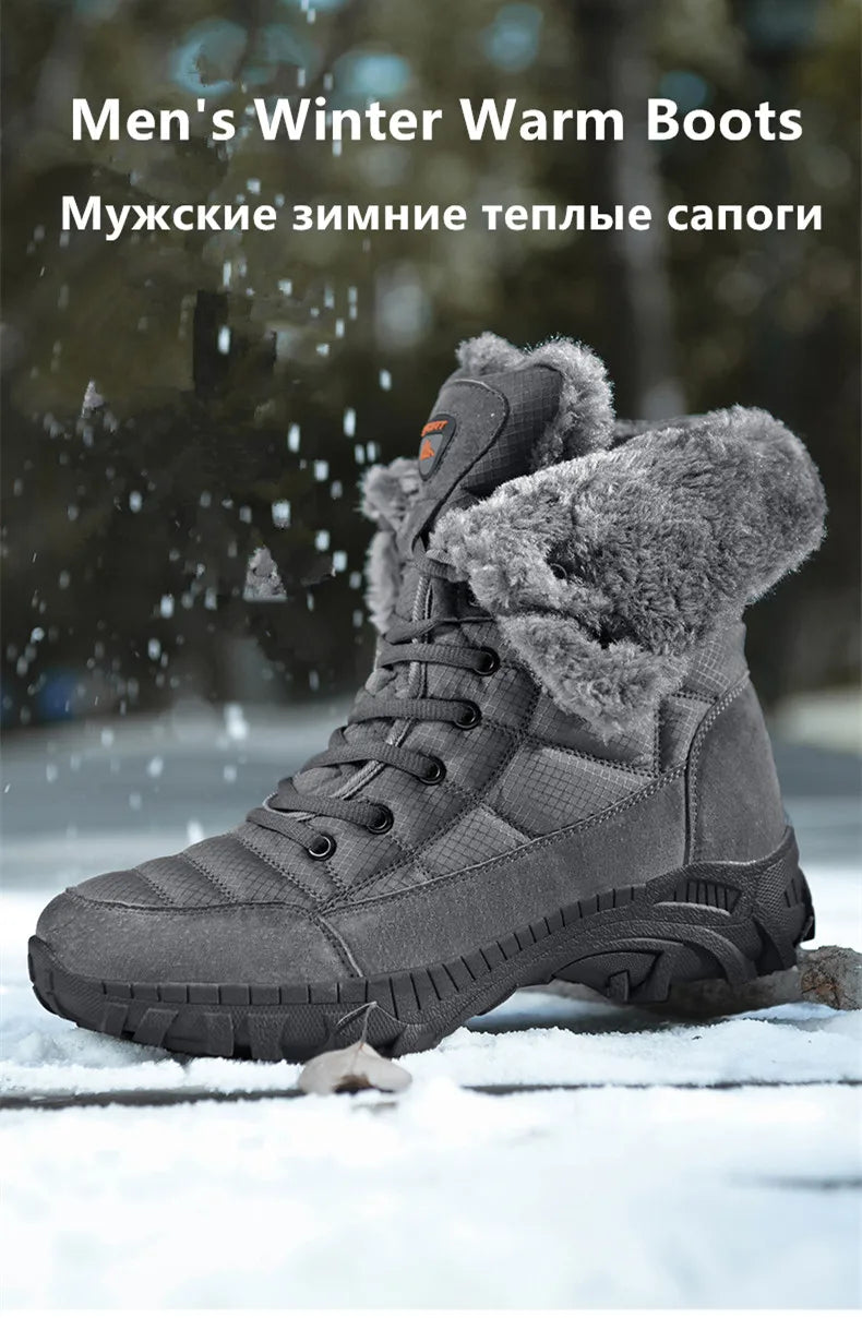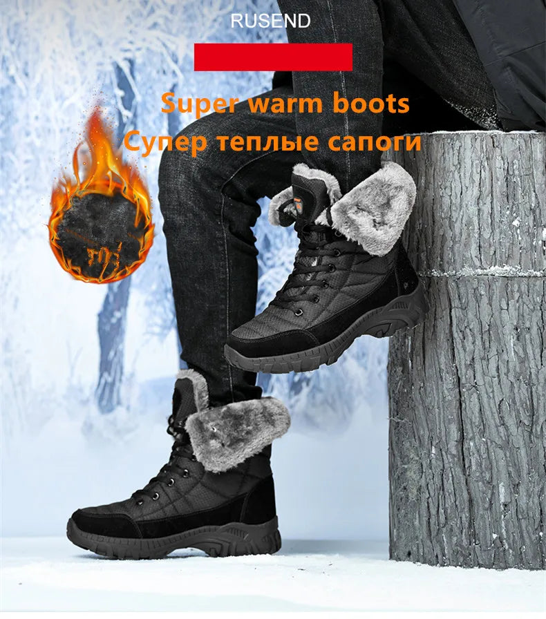 Men Winter Snow Boots Super Warm Men Hiking Boots High Quality Waterproof Leather High Top Big Size Men's Boots Outdoor Sneakers