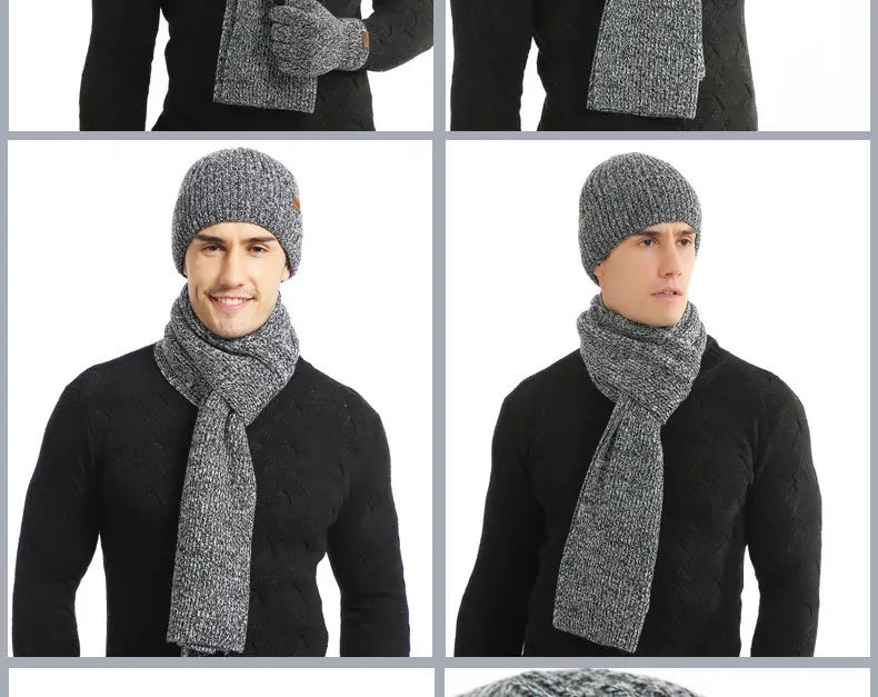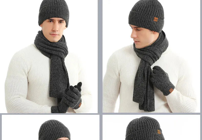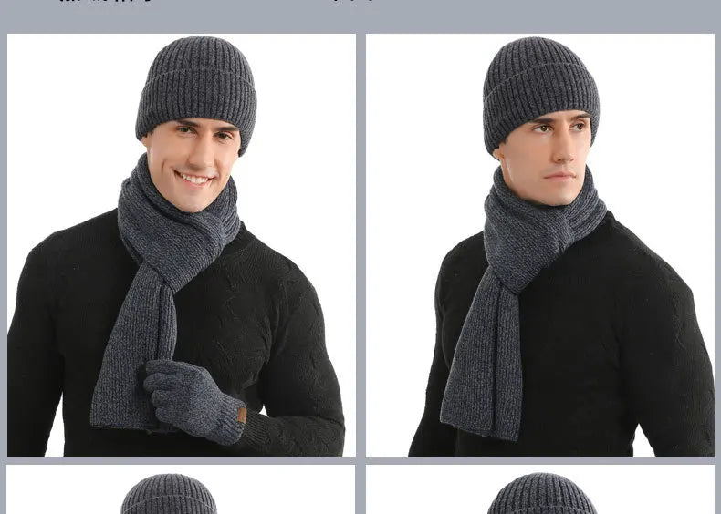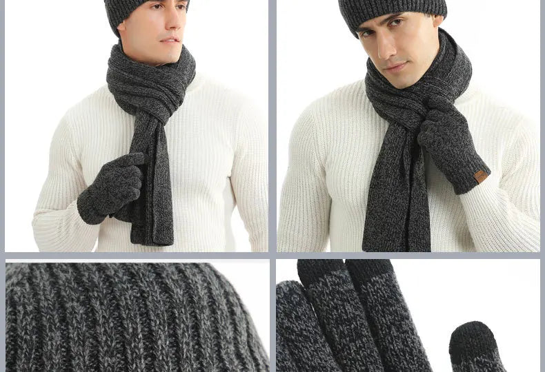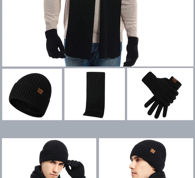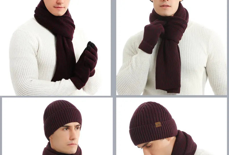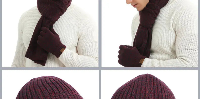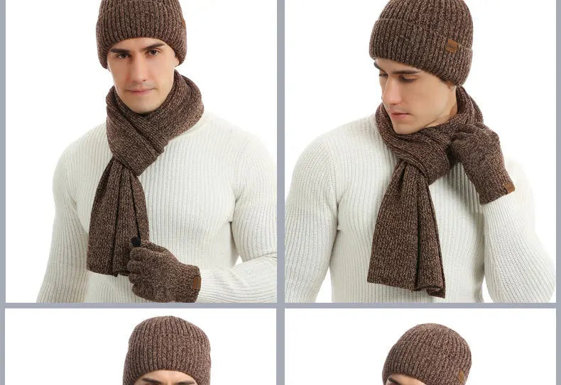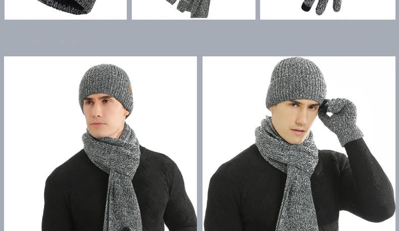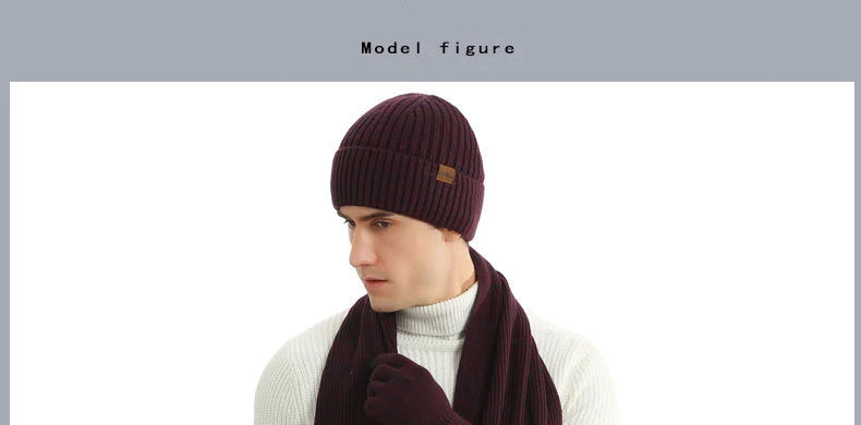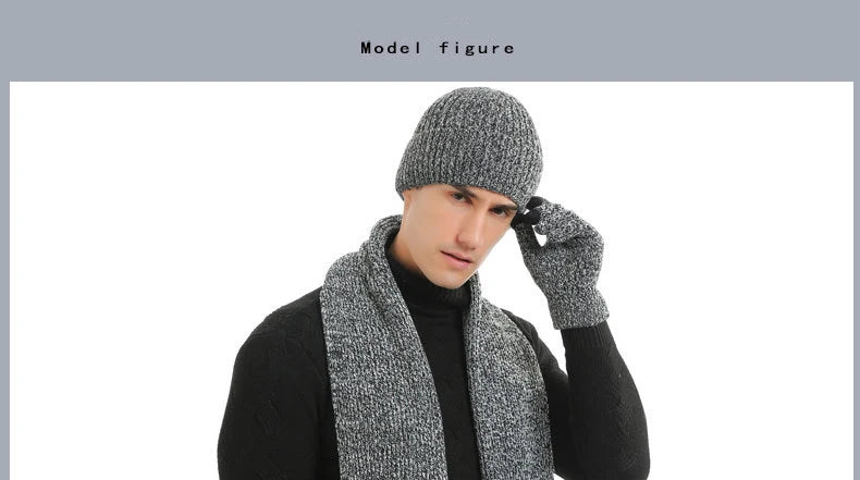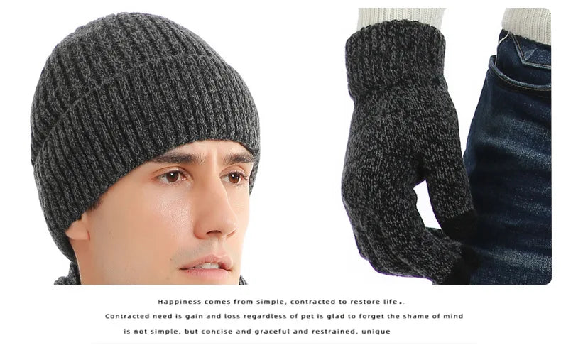 Men's Autumn Winter Keep Warm Set Beanie Gloves Scarf Male Woolen Yarn Knitted Muffler Spring Fall Hat Solid Color Neckerchief