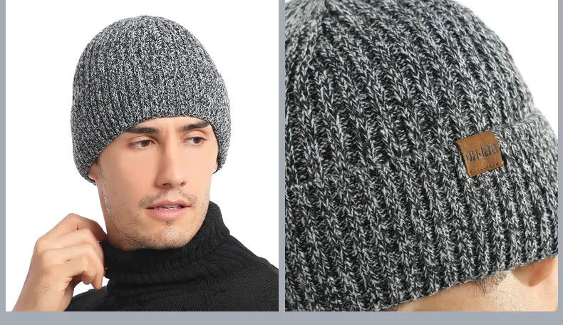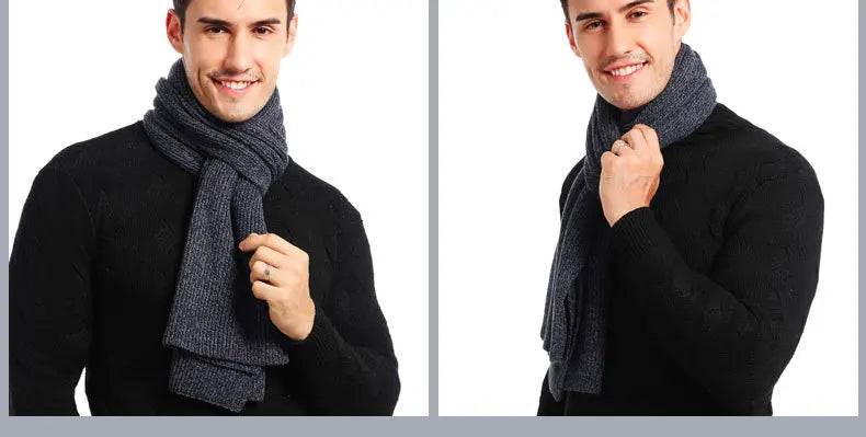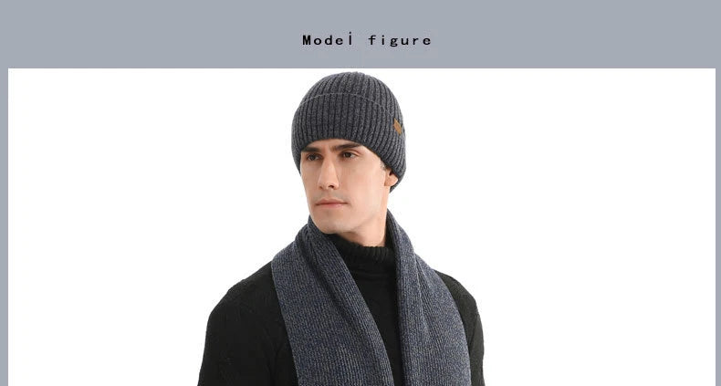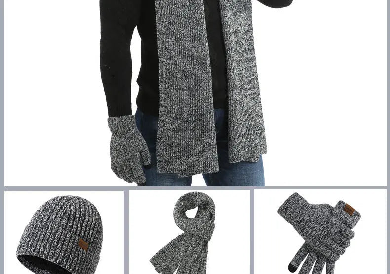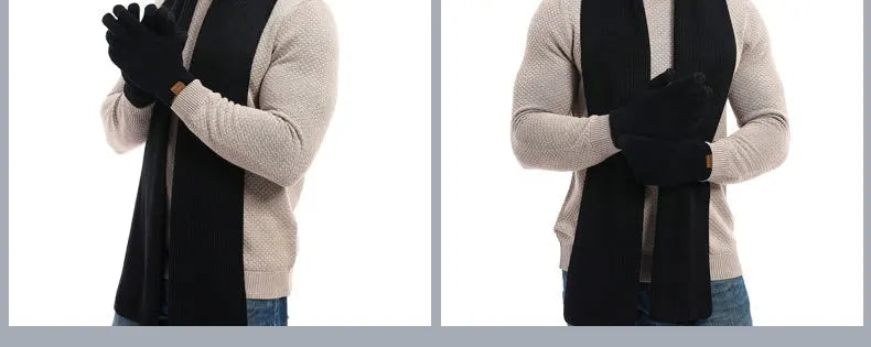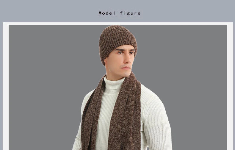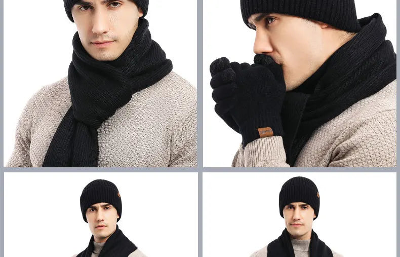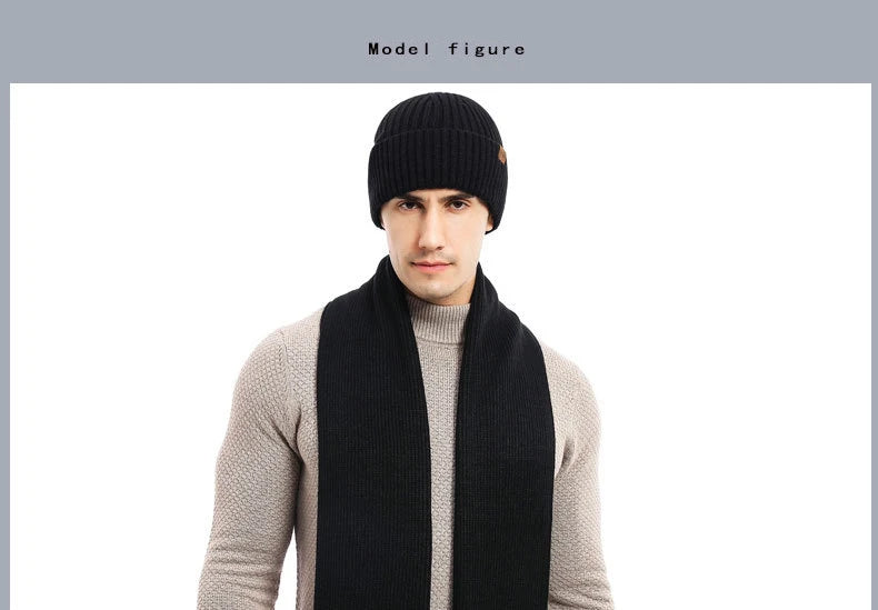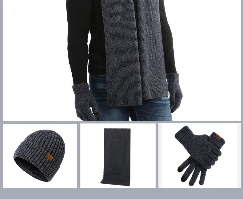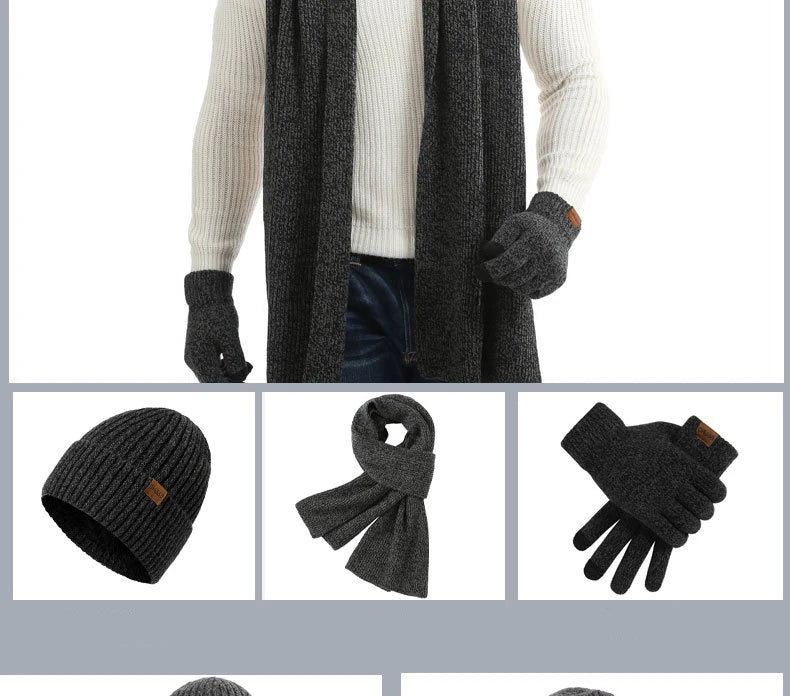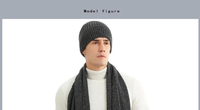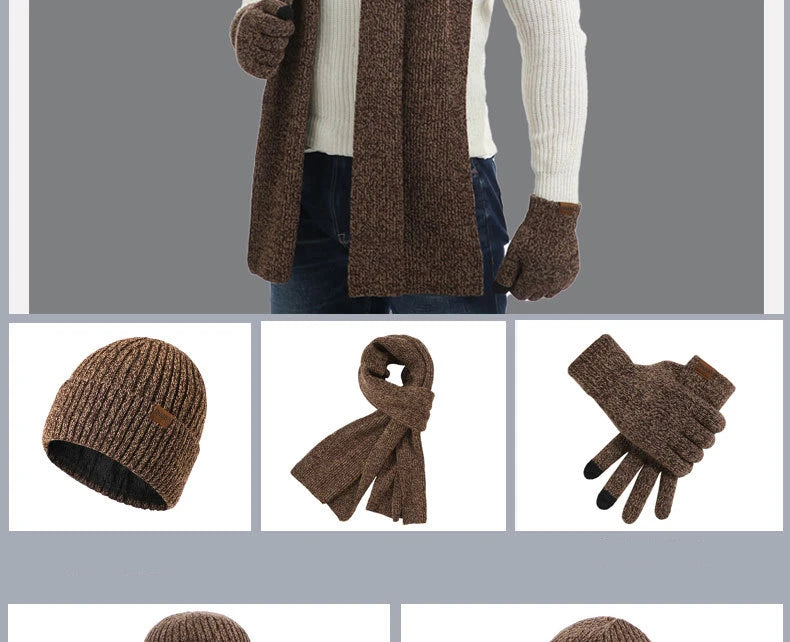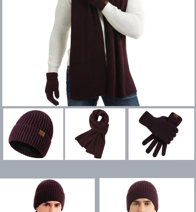 Men's Autumn Winter Keep Warm Set Beanie Gloves Scarf Male Woolen Yarn Knitted Muffler Spring Fall Hat Solid Color Neckerchief