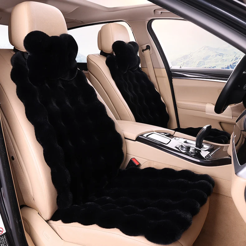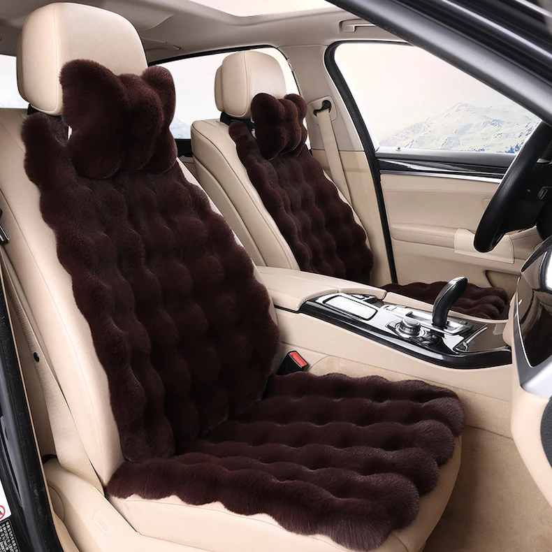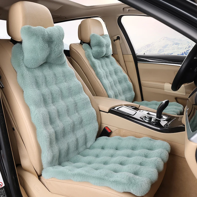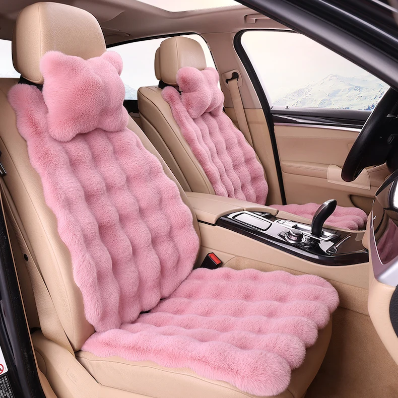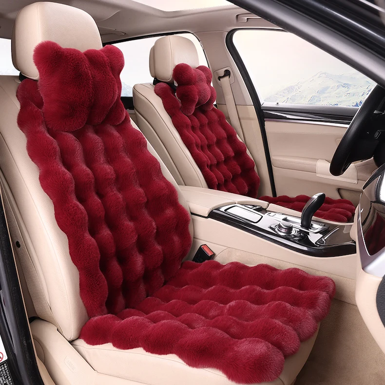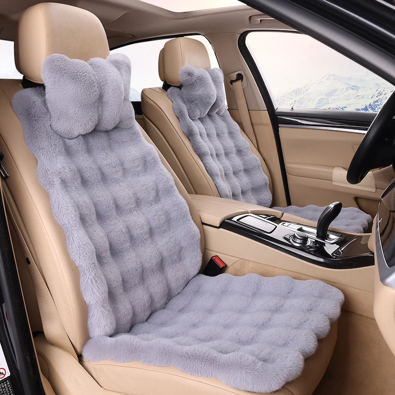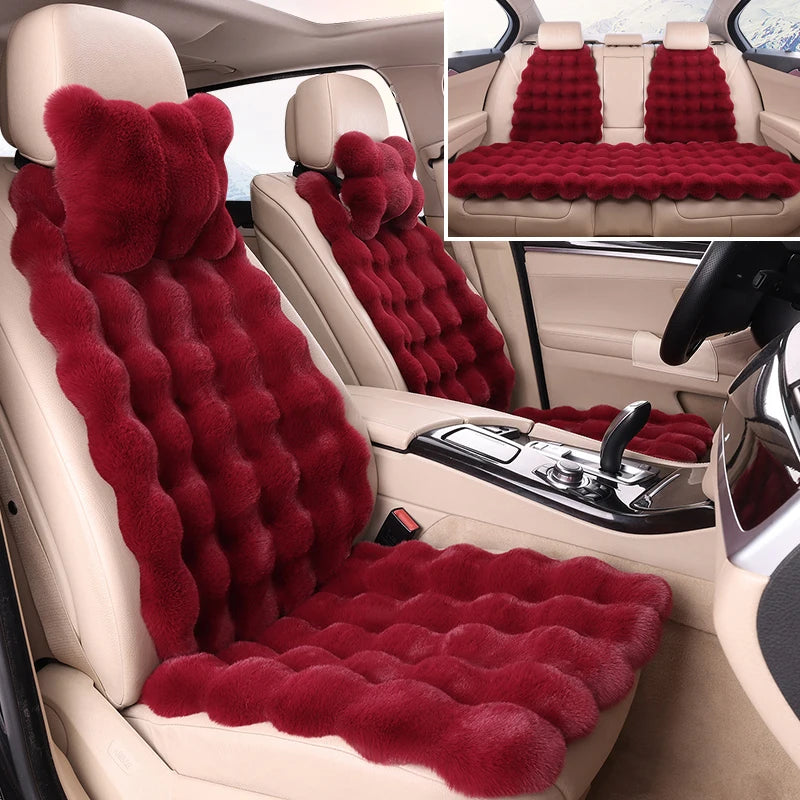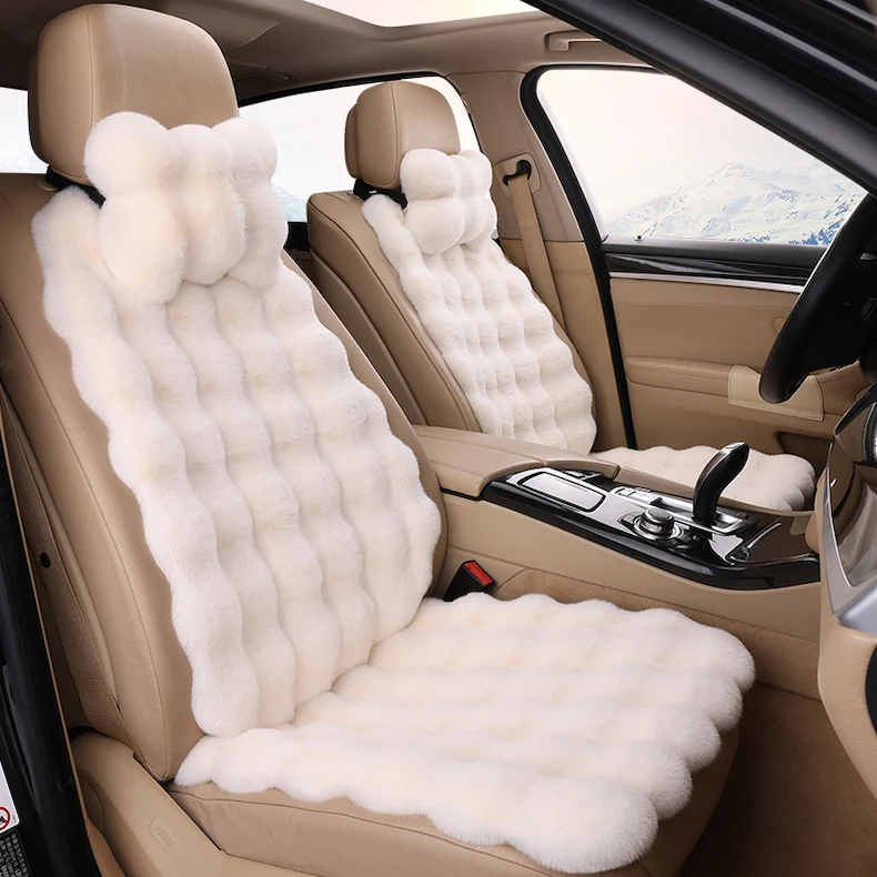New Bubble Fleece Car Seat Cushion – Thickened Plush Seat Cover with Artificial Rabbit Fur, Anti-Slip Winter Car Seat Protector