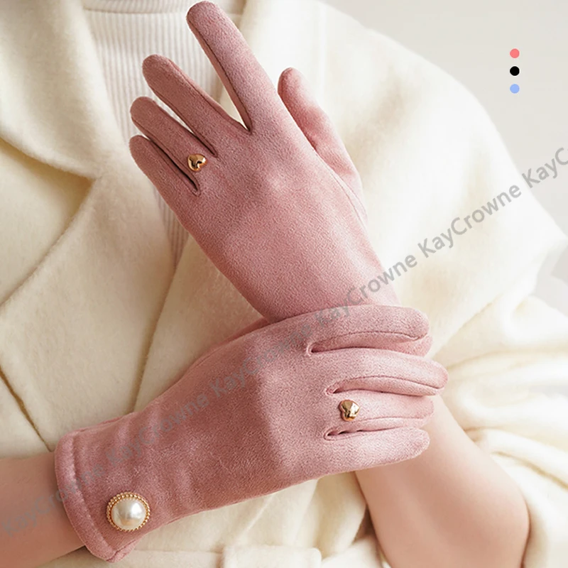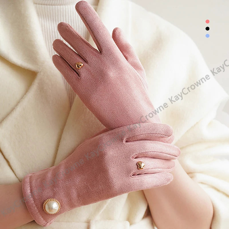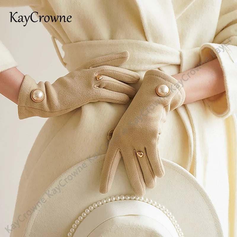 New Fashion Imitation Pearl Gloves for Women – Elegant Winter Touch Screen Gloves, Warm, Windproof, and Perfect for Riding and Daily Wear