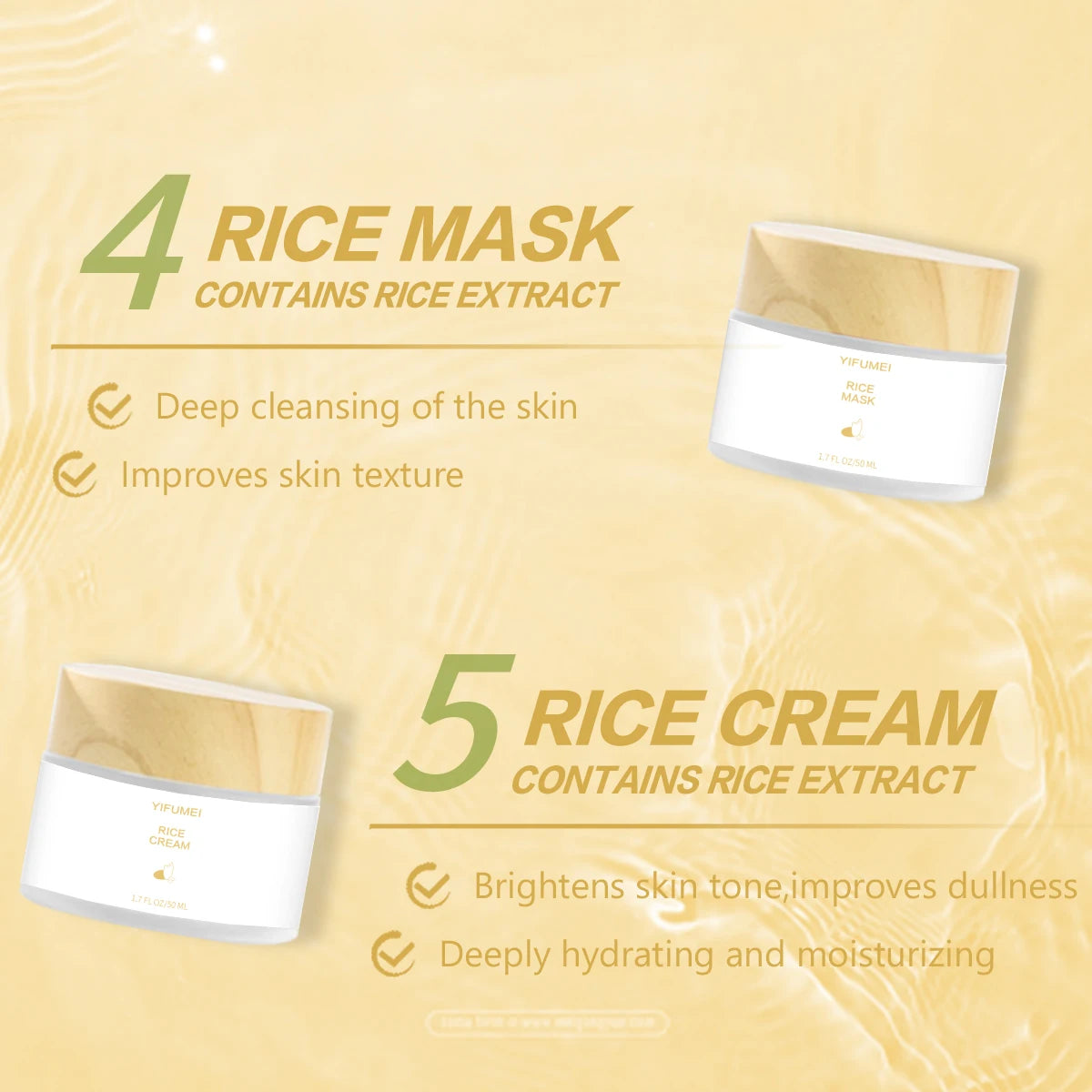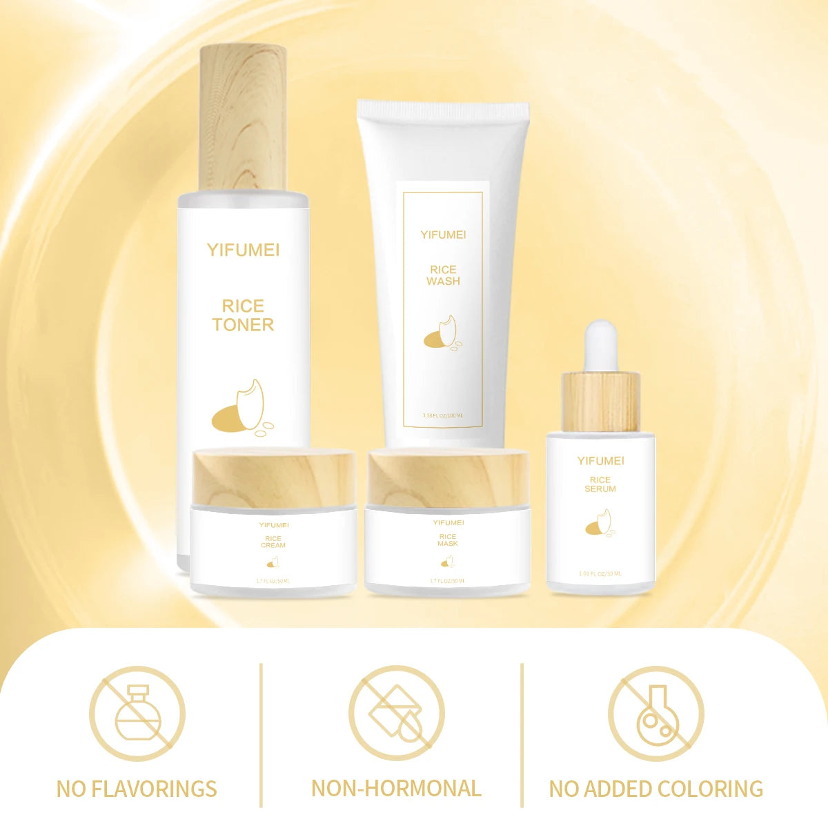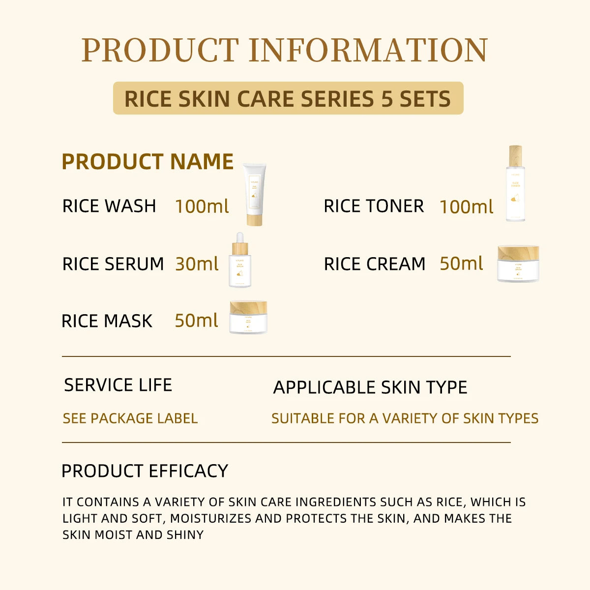 Rice 5-Pcs Facial Kit Face Skin Care Set Moisturizing Brightening Lifting Deep Facial Cleanser for Young Glowy Korean Skin