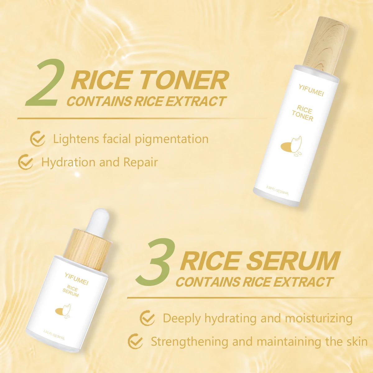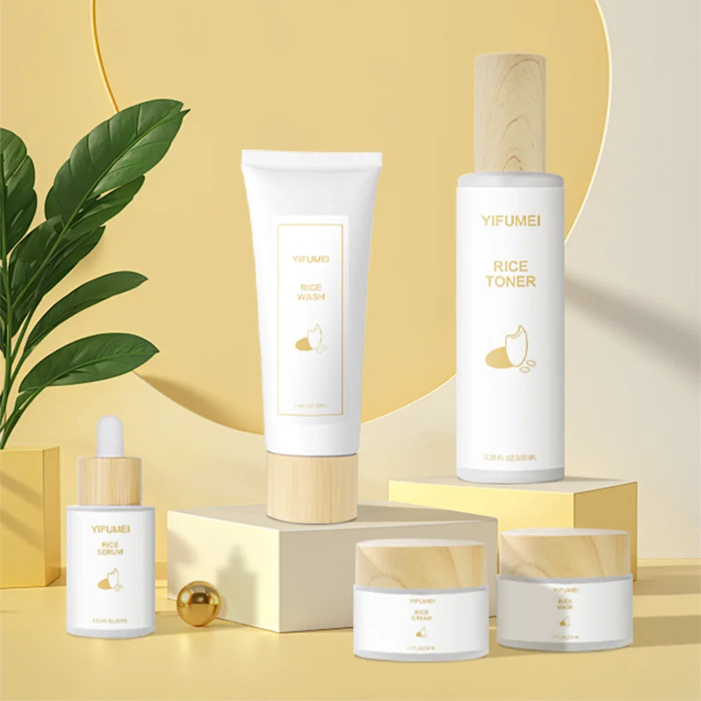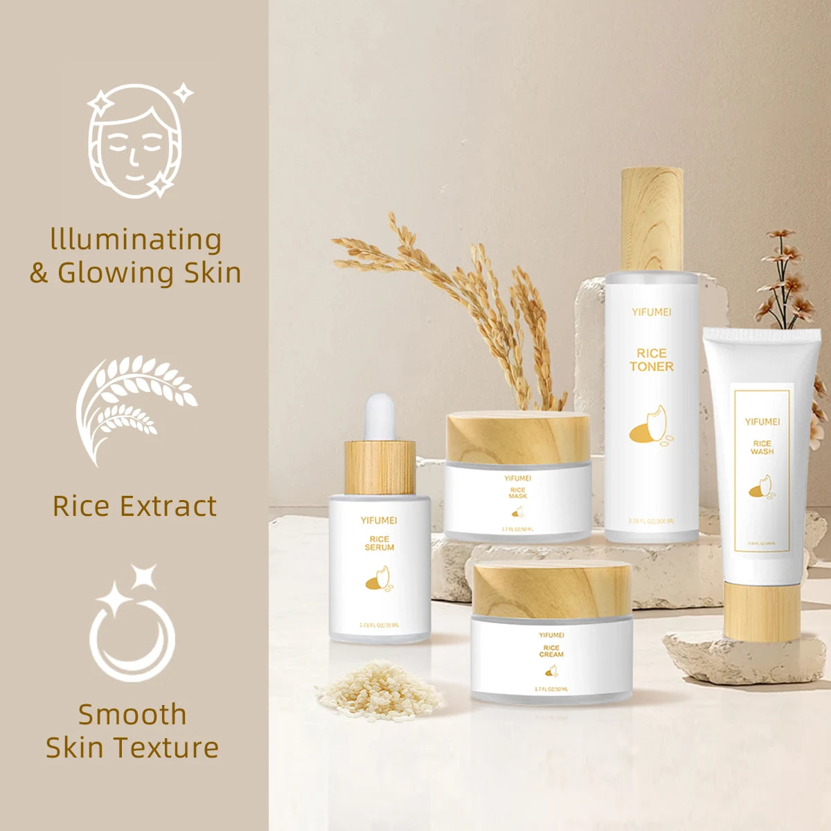 Rice 5-Pcs Facial Kit Face Skin Care Set Moisturizing Brightening Lifting Deep Facial Cleanser for Young Glowy Korean Skin