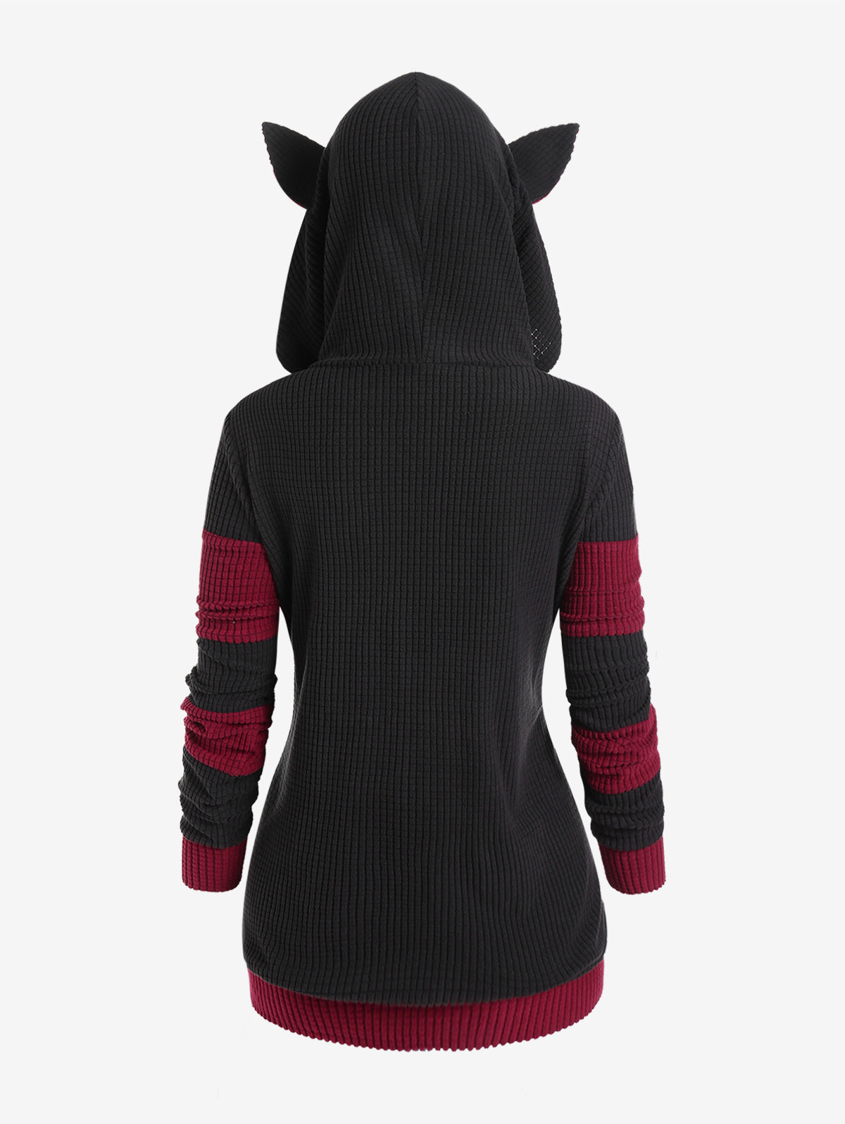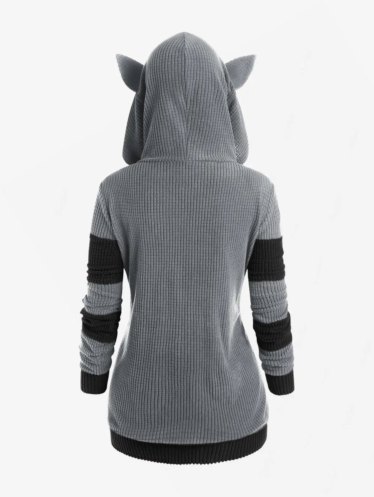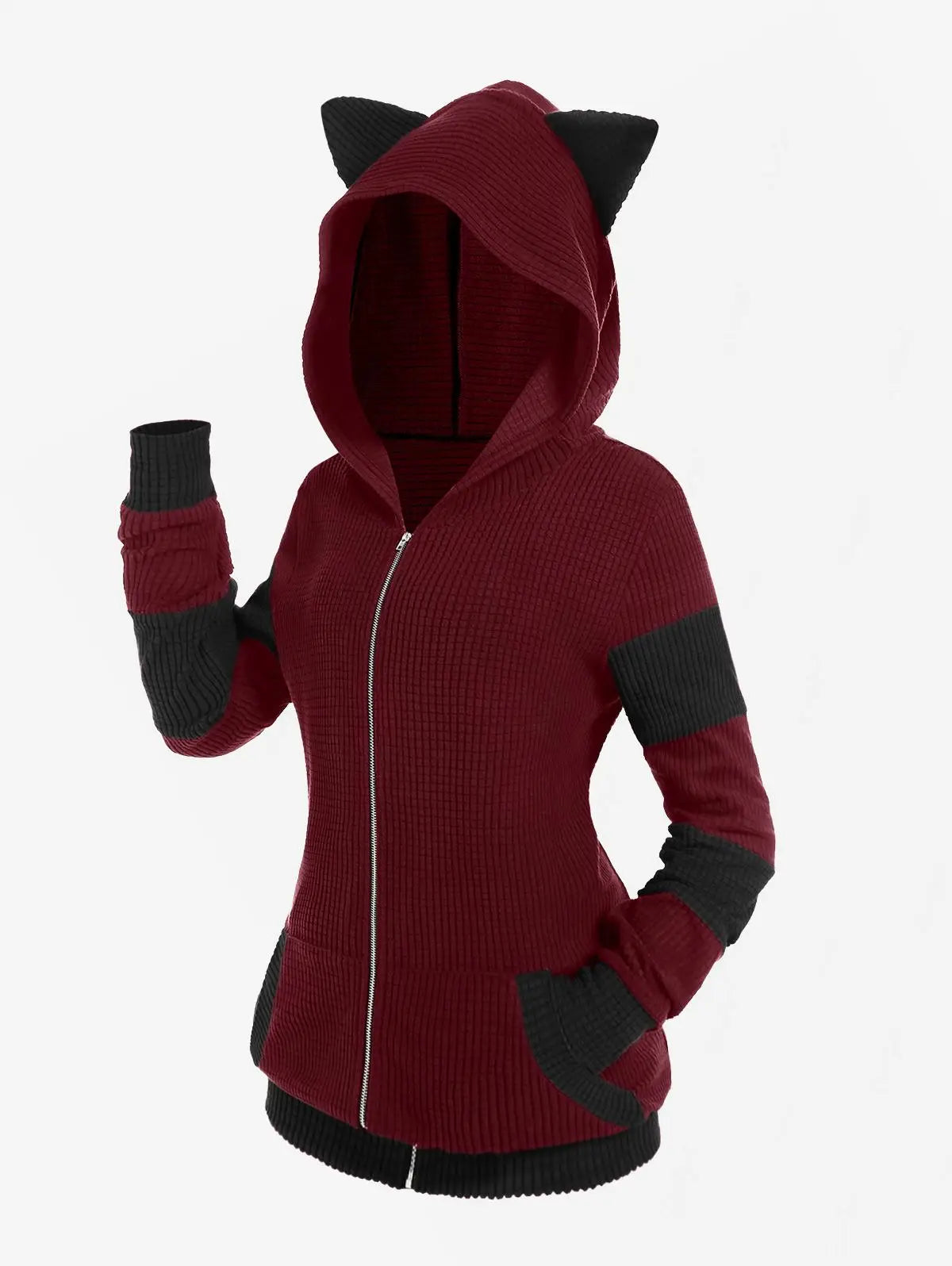 ROSEGAL Cute Fall,Winter Women Colorblock Jacket Cat Ear Ribbed Hooded Warm Long Sleeve Zipper Coat 4XL Outwear Tops New Arrival
