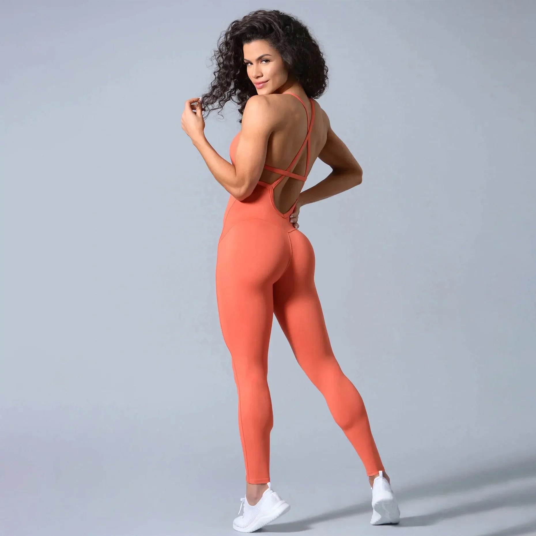 Seamless Yoga Jumpsuits Sports Fitness Backless Hip-lifting Running Jumpsuits Training Dance Dress Gym Workout Clothes for Women