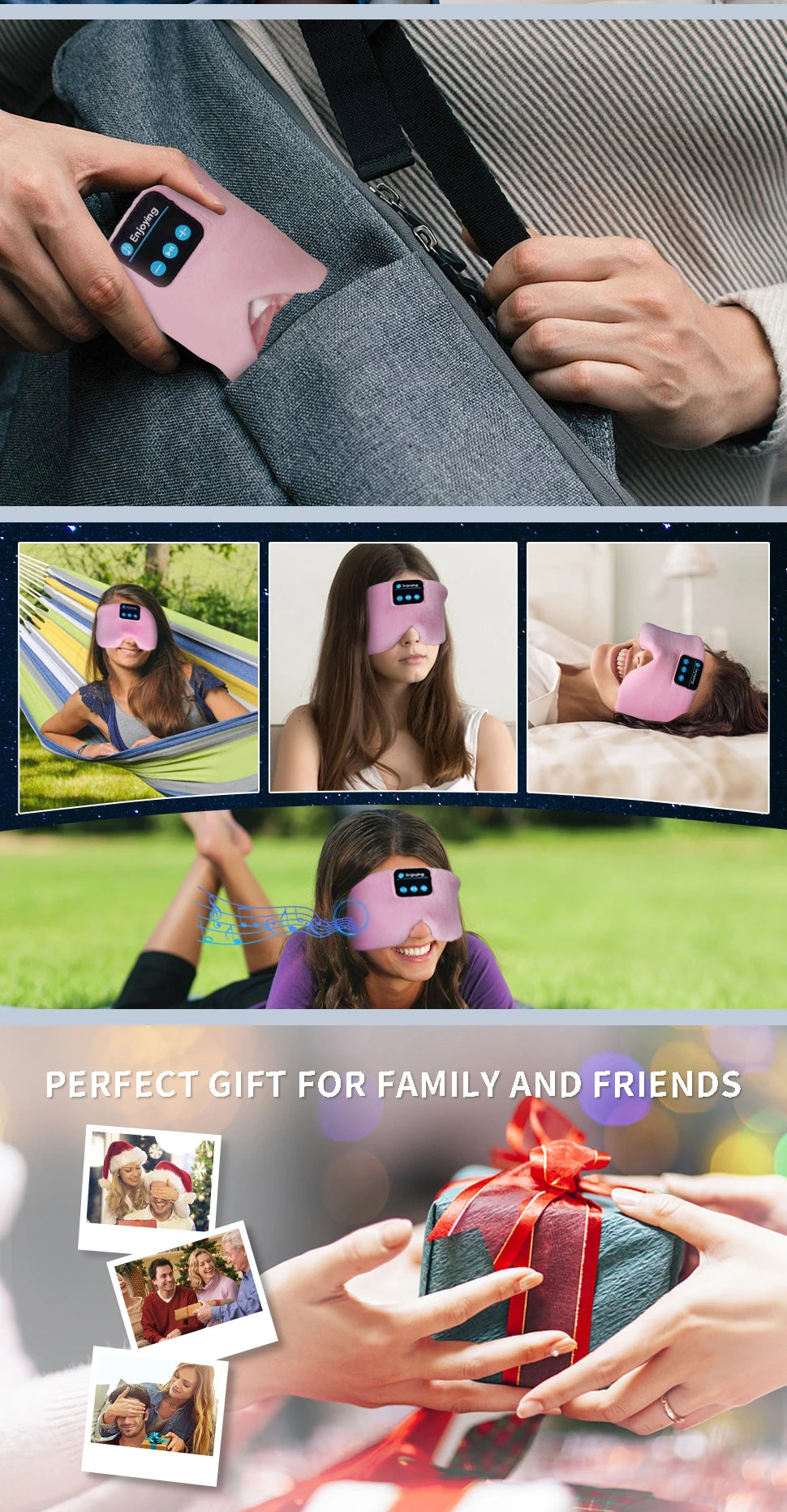 bluetooth earphones: The Bluetooth Eye Mask adjustable and fits most of people