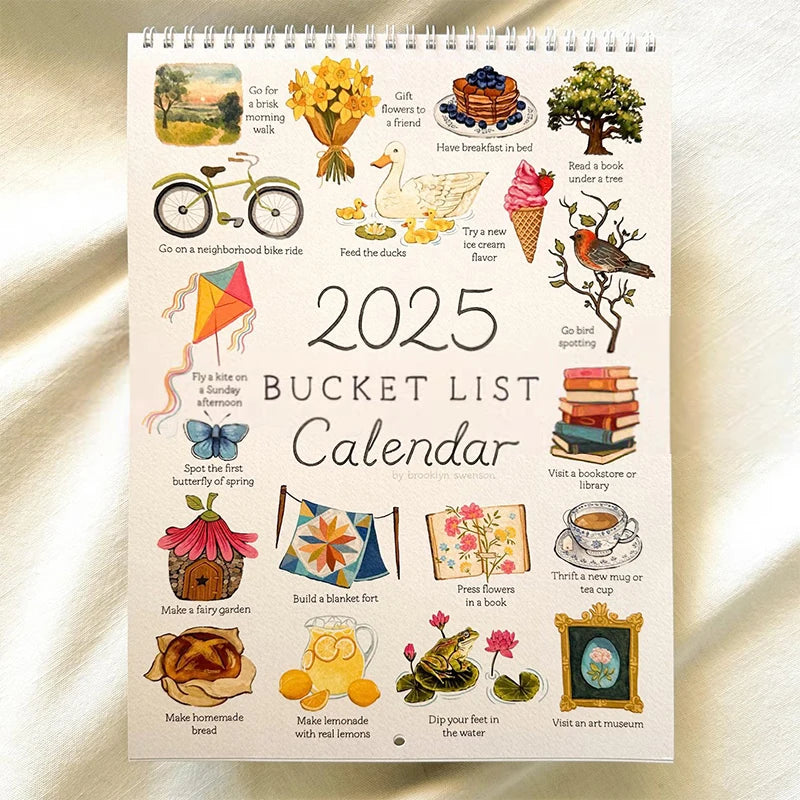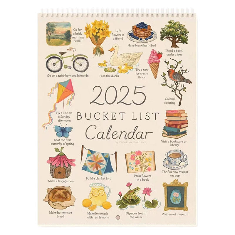 Spot PREORDER 2025 Bucket List Calendar Large Double Spiral Wire-Binding Wall Calendar Home Planned events