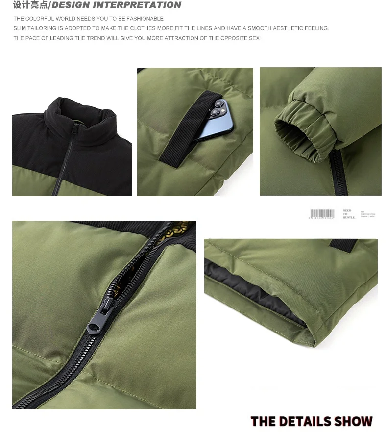 Vertical Collar Color-Block Down Jacket – Warm, Simple, and Trendy Design, Classic All-Purpose Fabrics, Comfortable and Skin-Friendly Winter Coat
