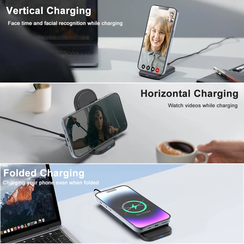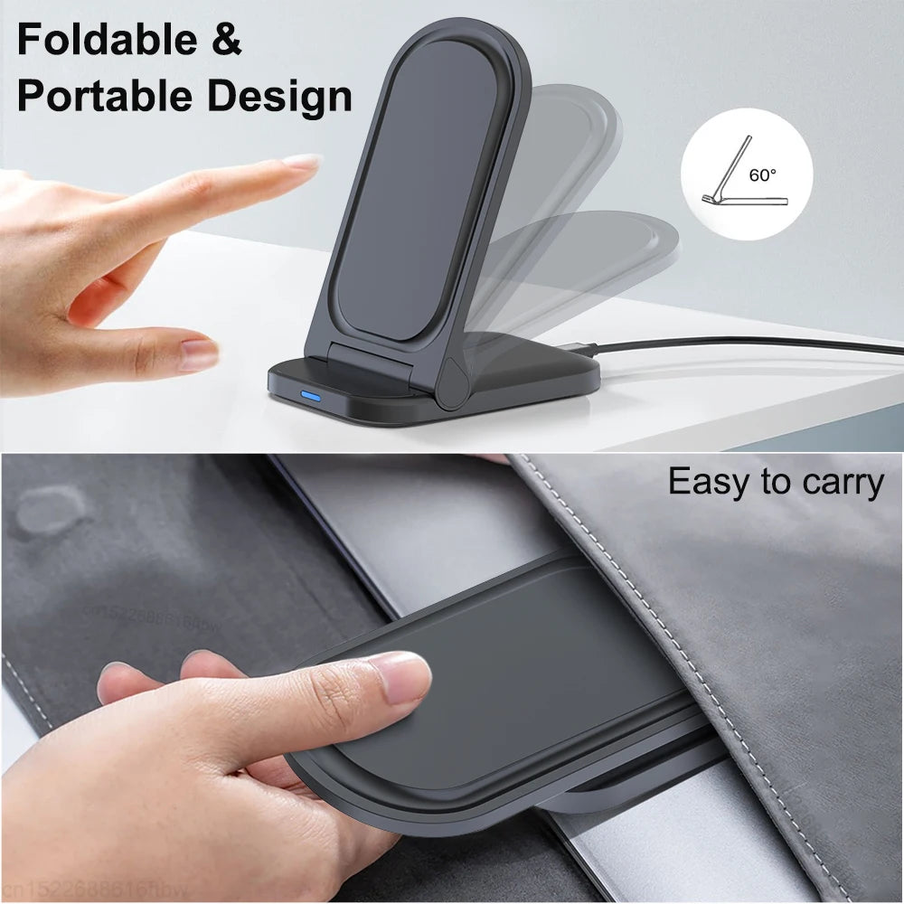Wireless Charger Stand Foldable Induction Fast Charging Station for iPhone 14 15 Pro Max Samsung Galaxy S24 S23 Folding Charger