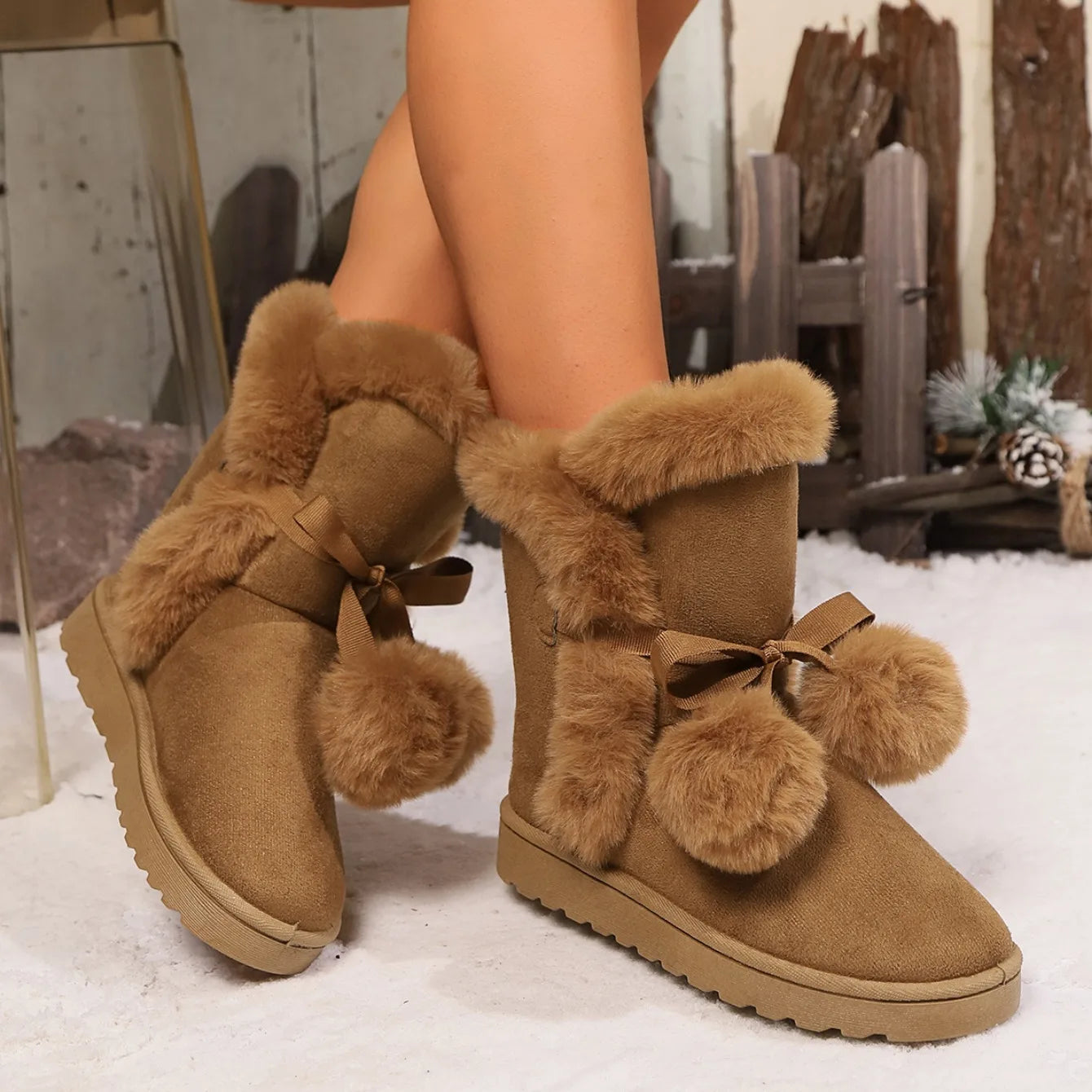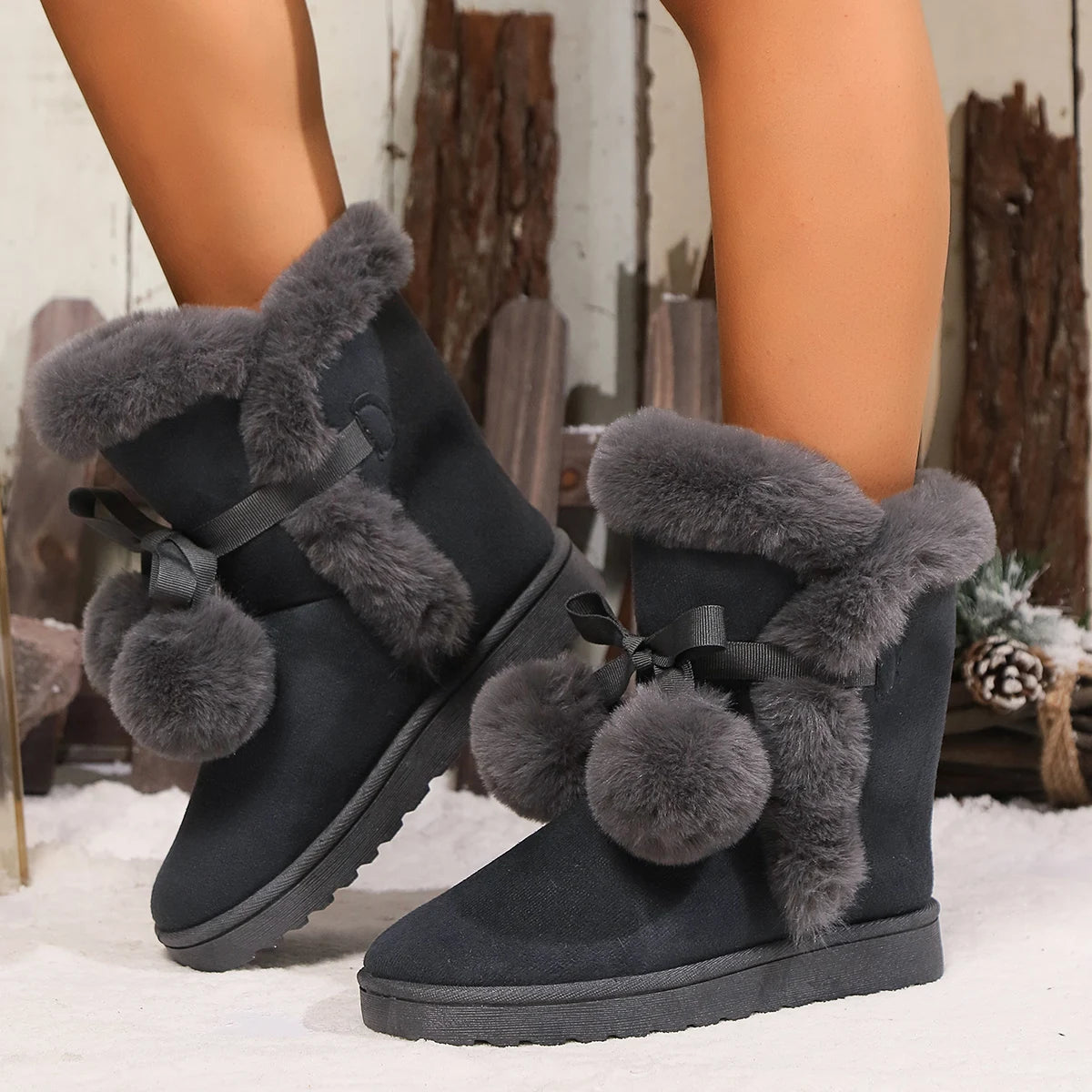 Women Boots 2024 New Winter Pompom Boots Women Plus Velvet Warm Soft Sole Snow Boots Indoor Walking Shoes Women Zapatos De Mujer