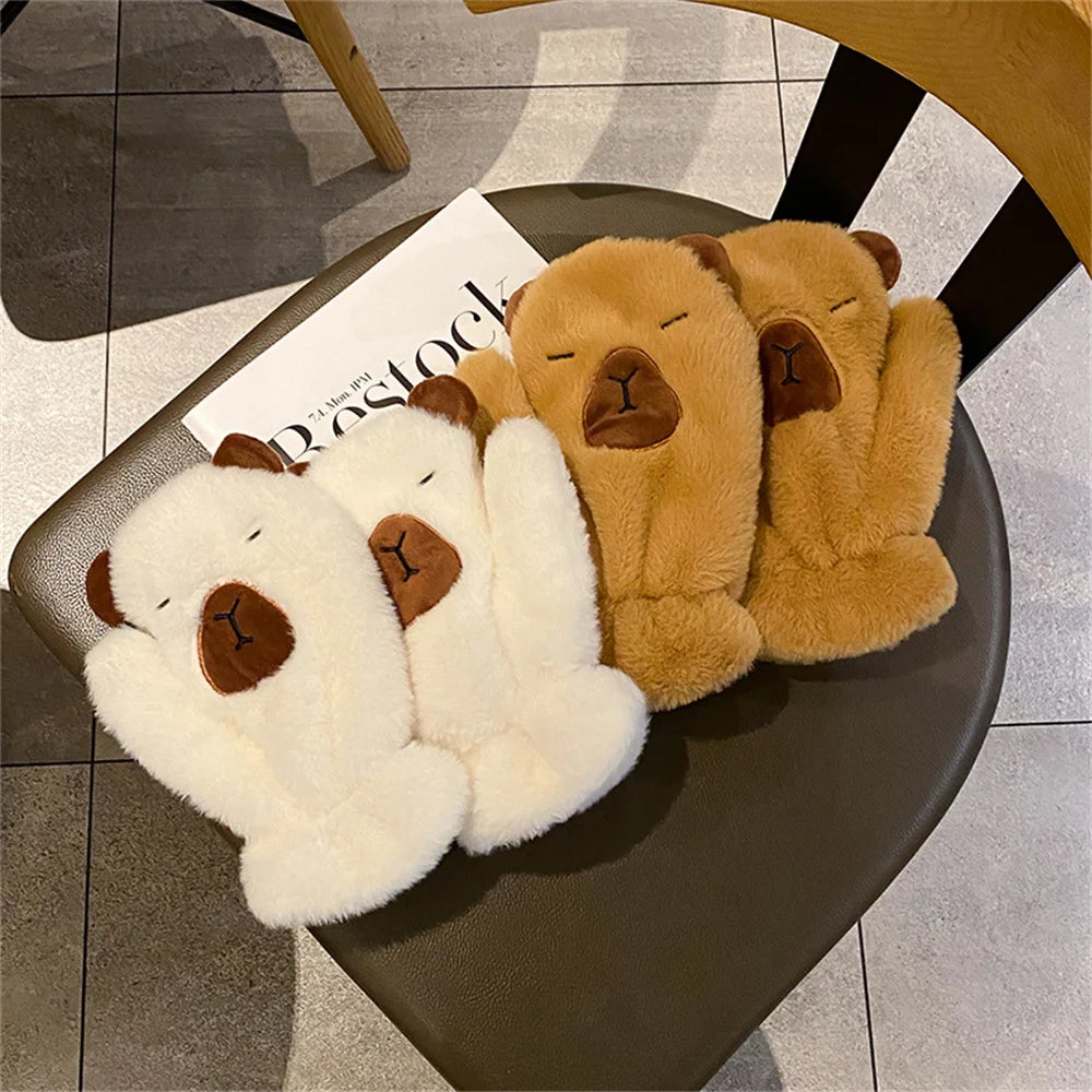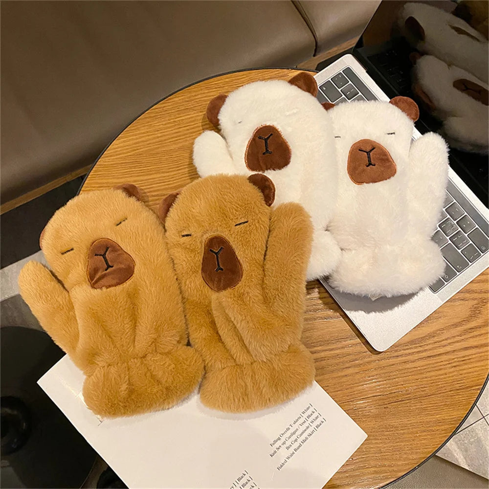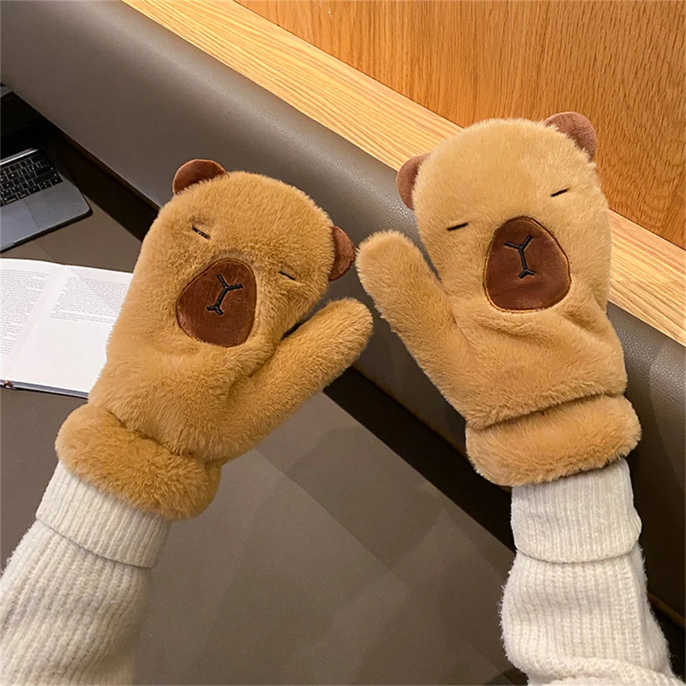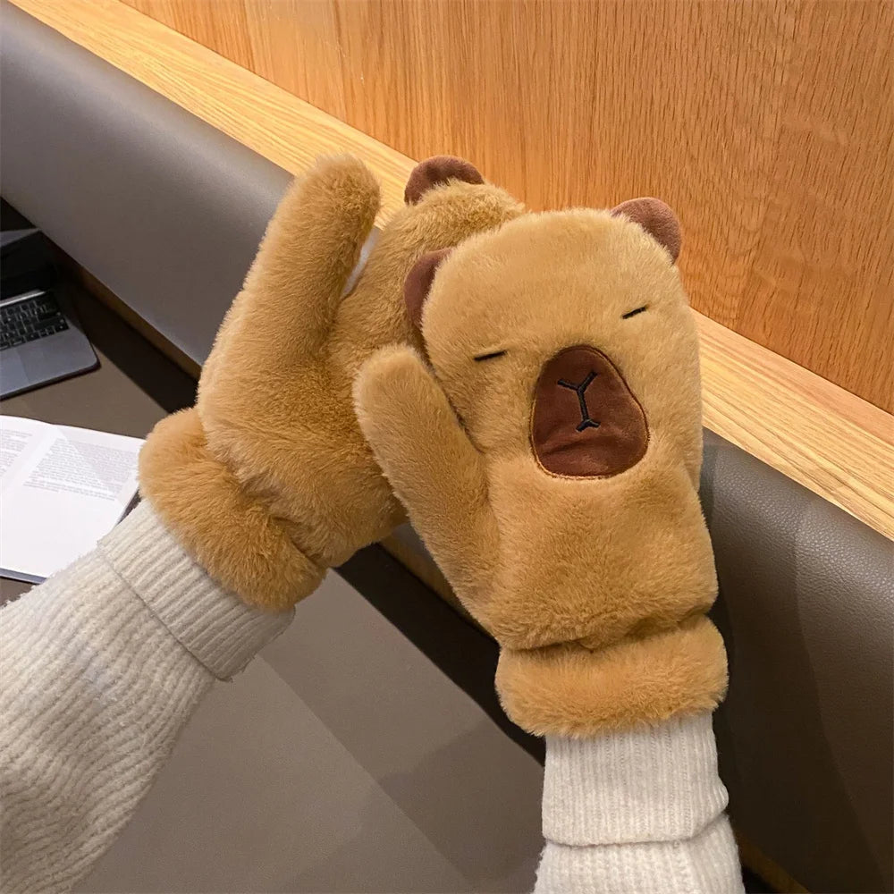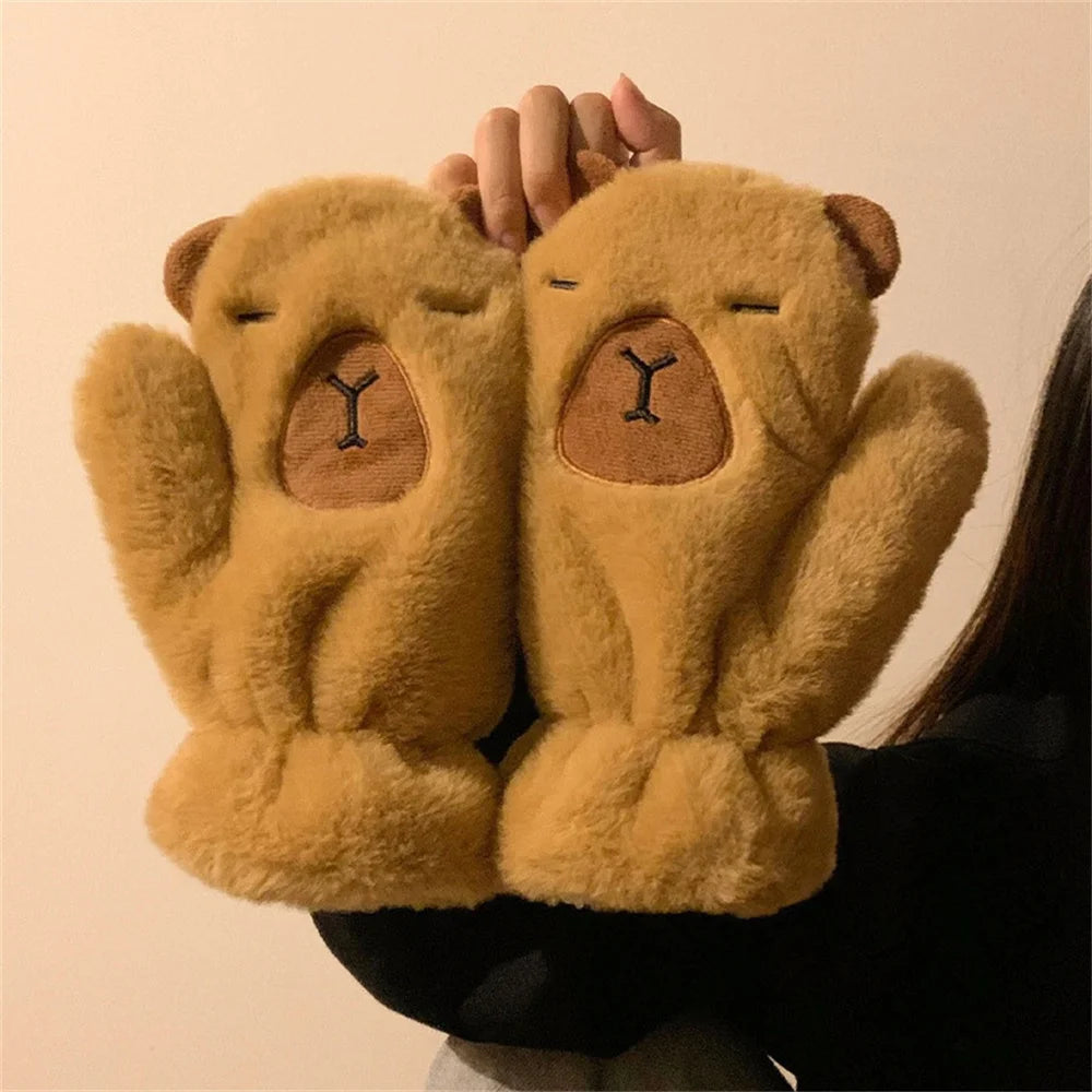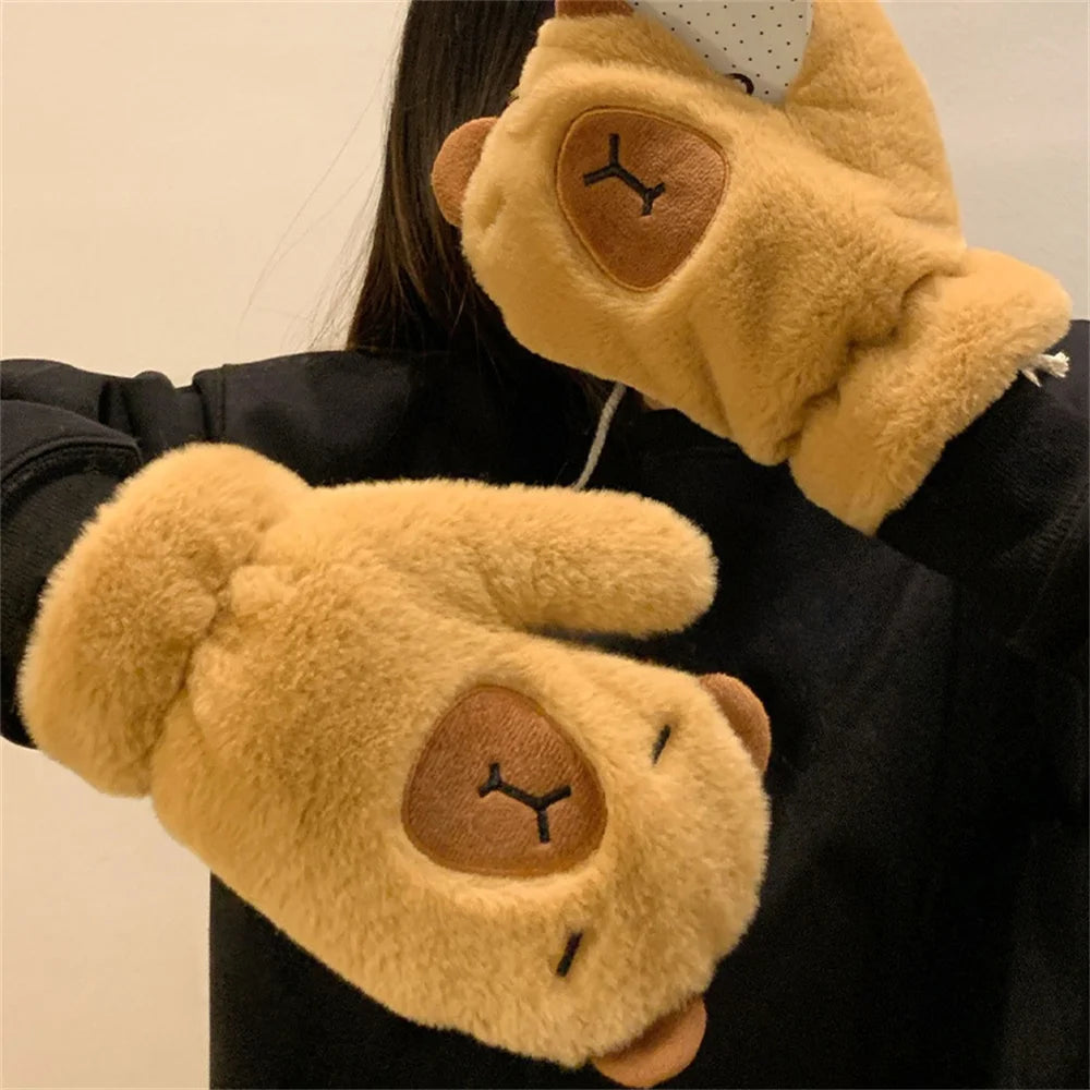 Women Girls Capybara Plush Gloves Fashion Cycling Neck Warmers Neck Scarf Windproof Mittens Driving Running Accessories