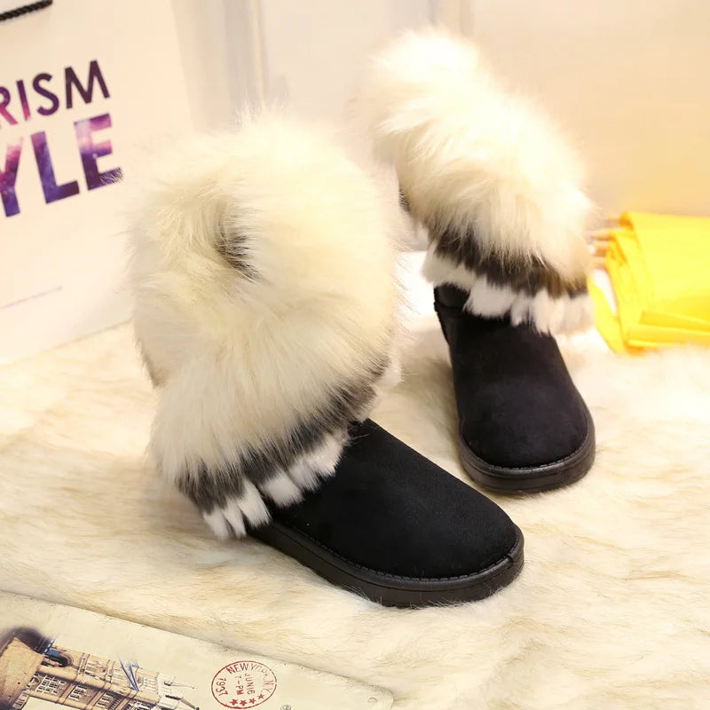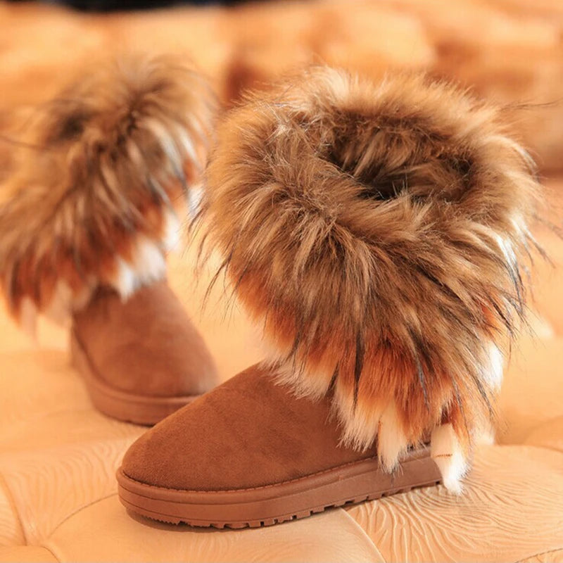 Women Winter Boots Snow Fur Boots Winter Warm Ankle Boots For Women Snow Shoes Style Round-toe Slip On Winter Boots Size 36-42