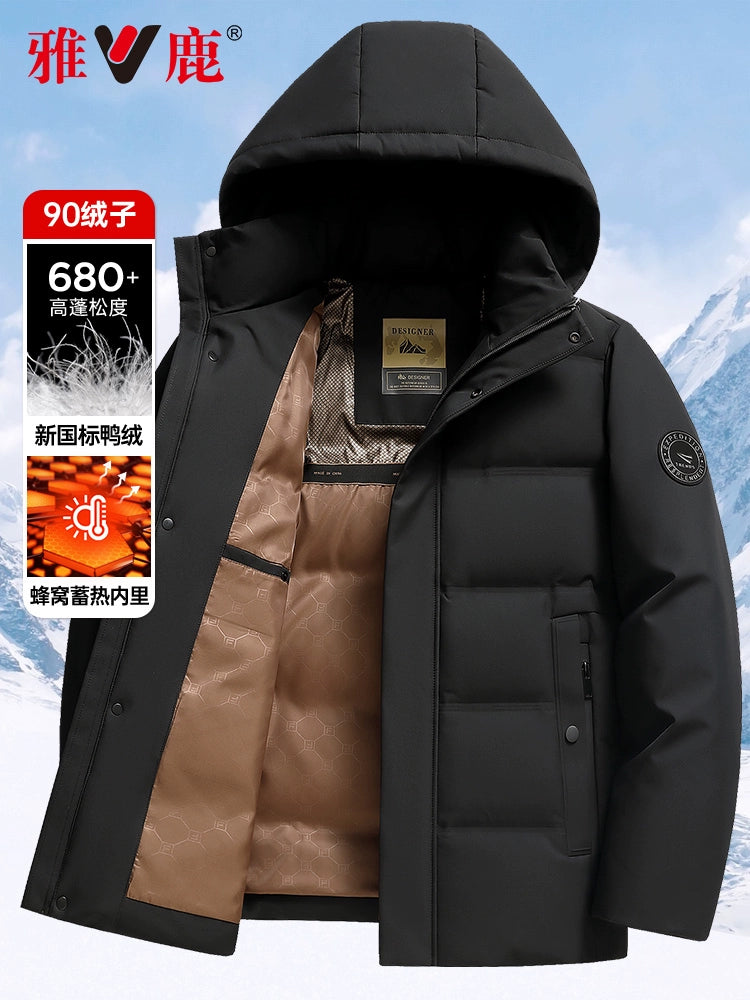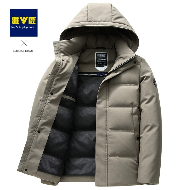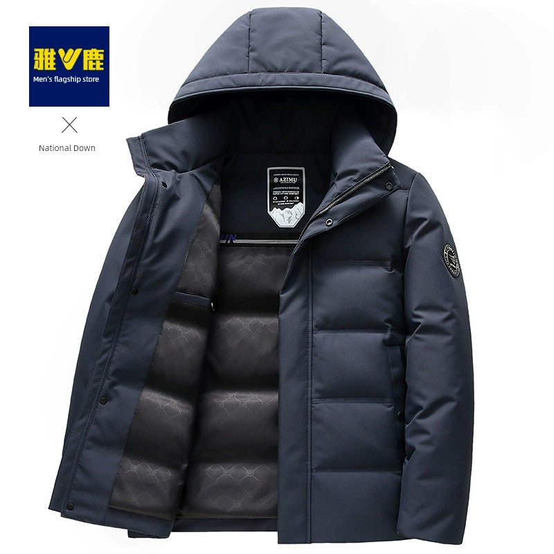 Yaloo Short Hooded Down Jacket for Middle-Aged Men – Warm, Stylish Outerwear for Winter Protection
