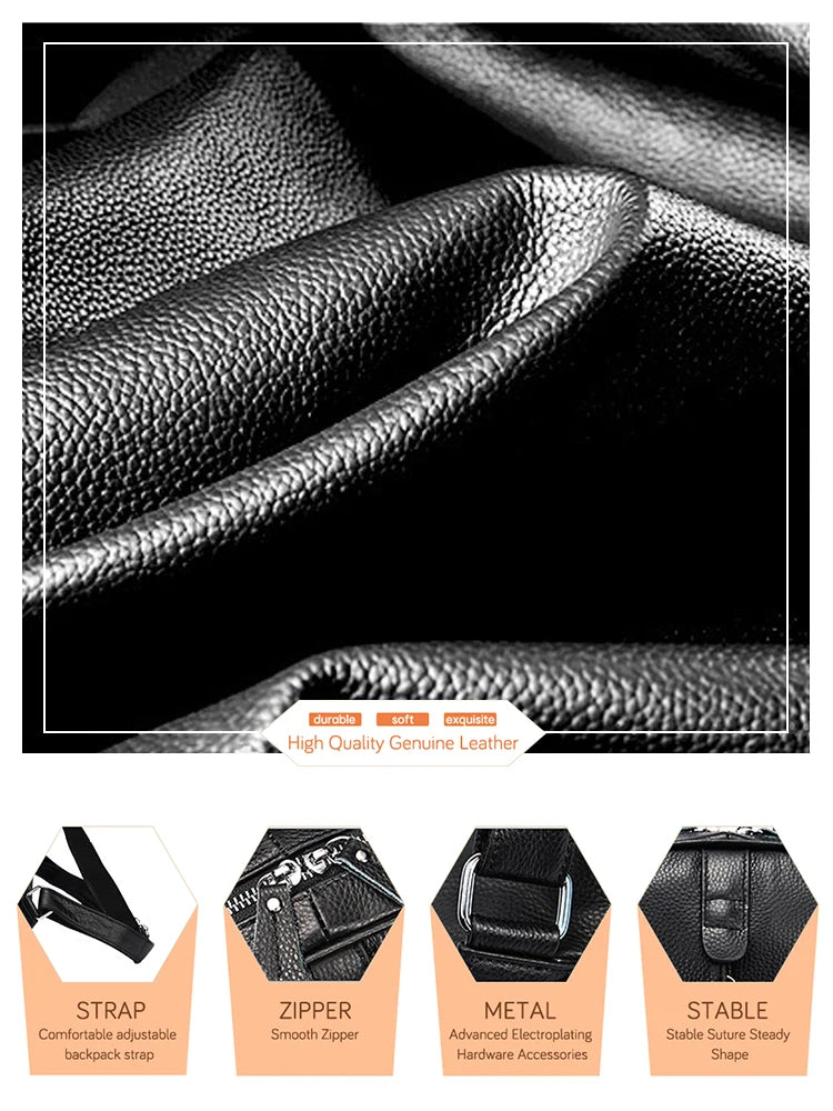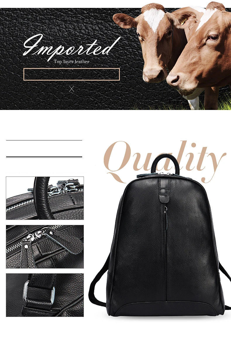 Zency Travel Backpacks Women 100% Genuine Leather Preppy Schoolbag For Girls Fashion Knapsack Large Capacity More Pockets